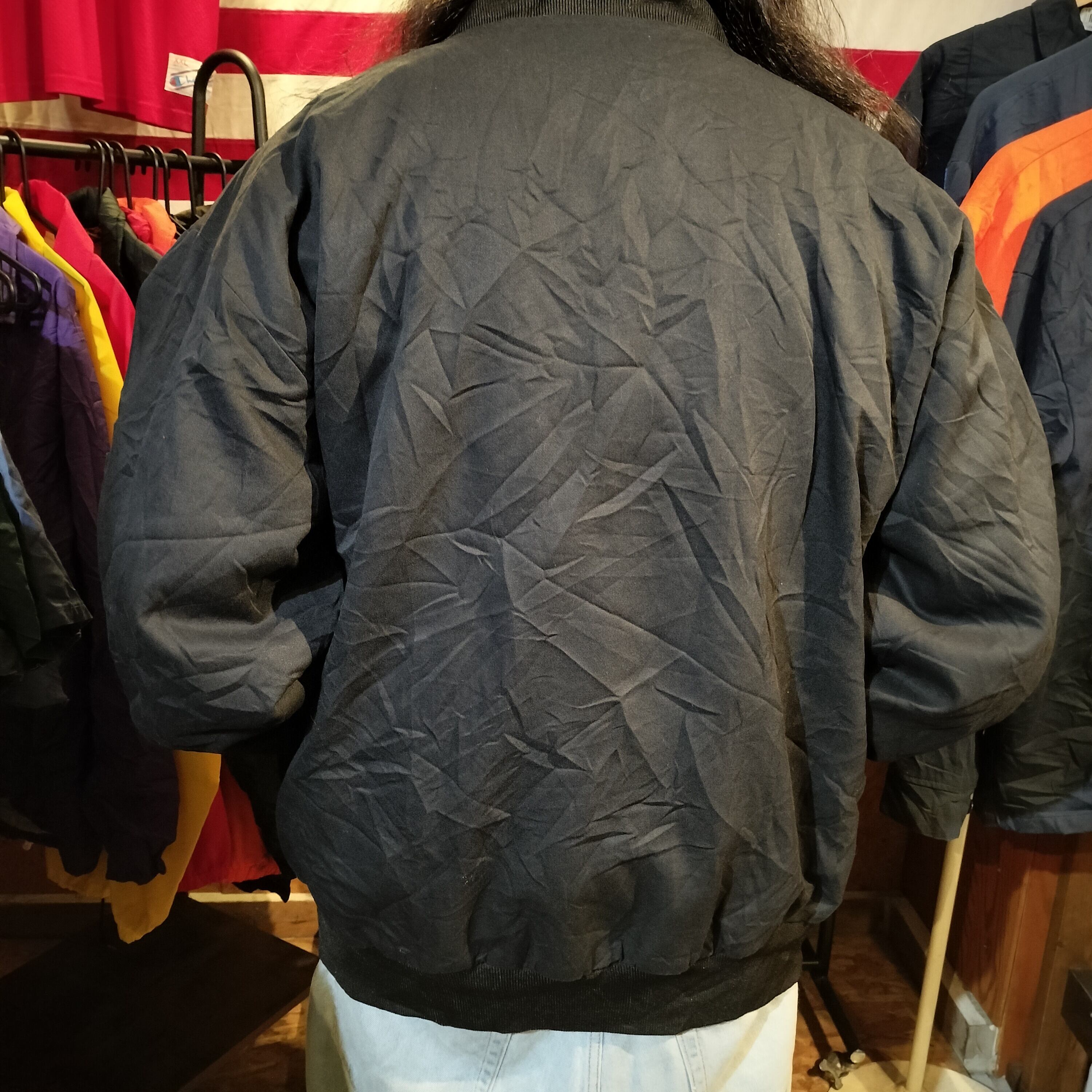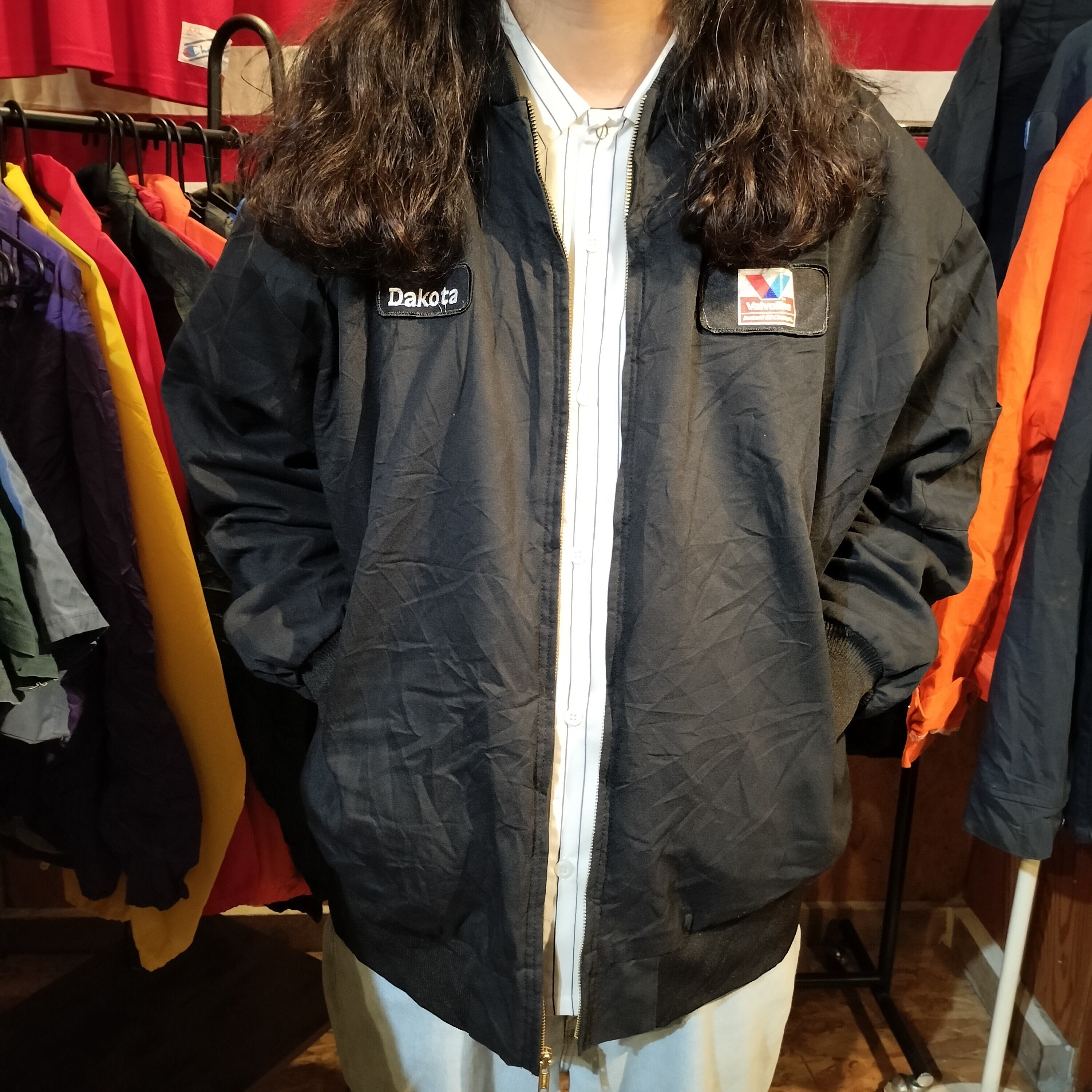 Used ジャケット◆UniWear XXL 襟無し ワークジャケット ワッペン ブラック◆ヴィンテージ USA古着