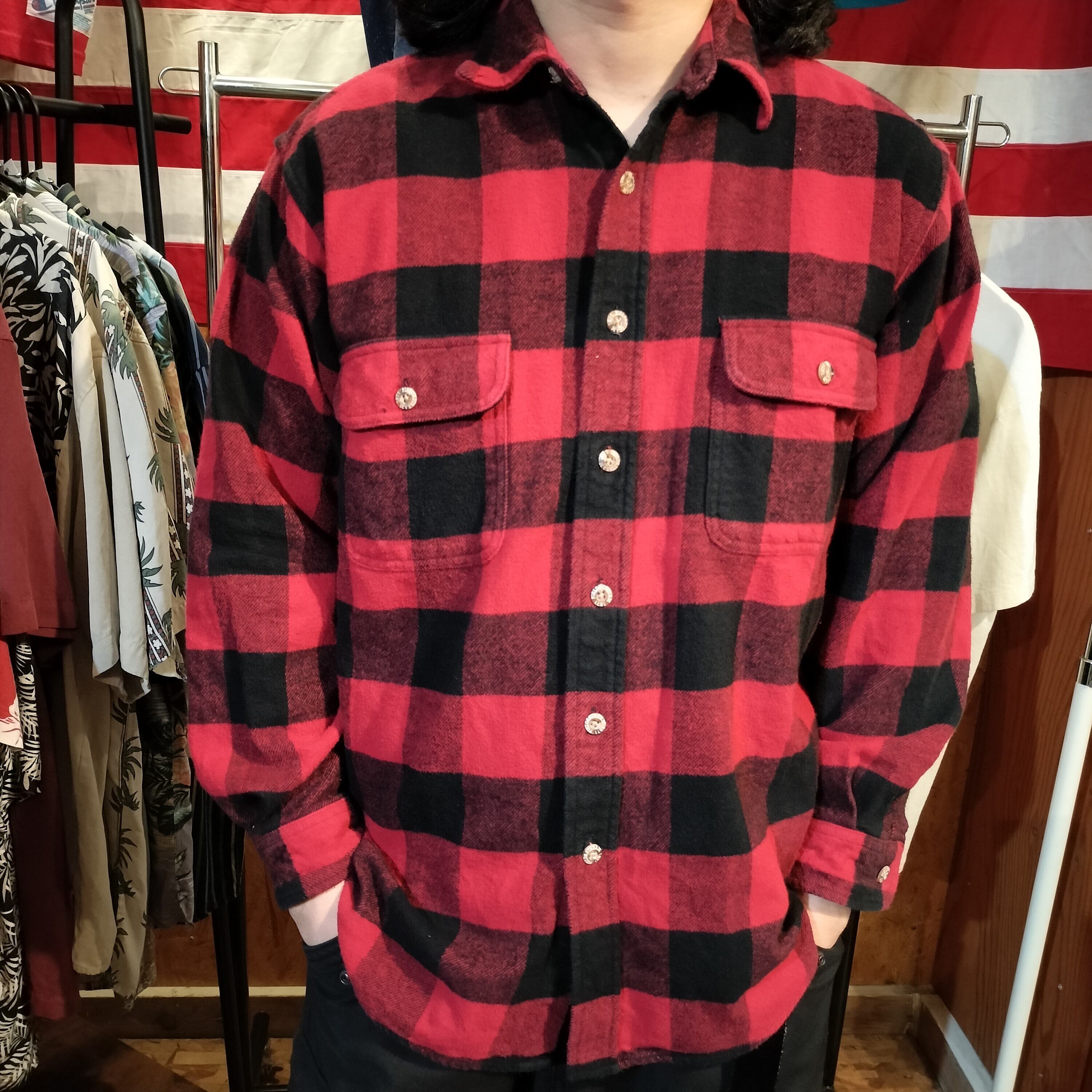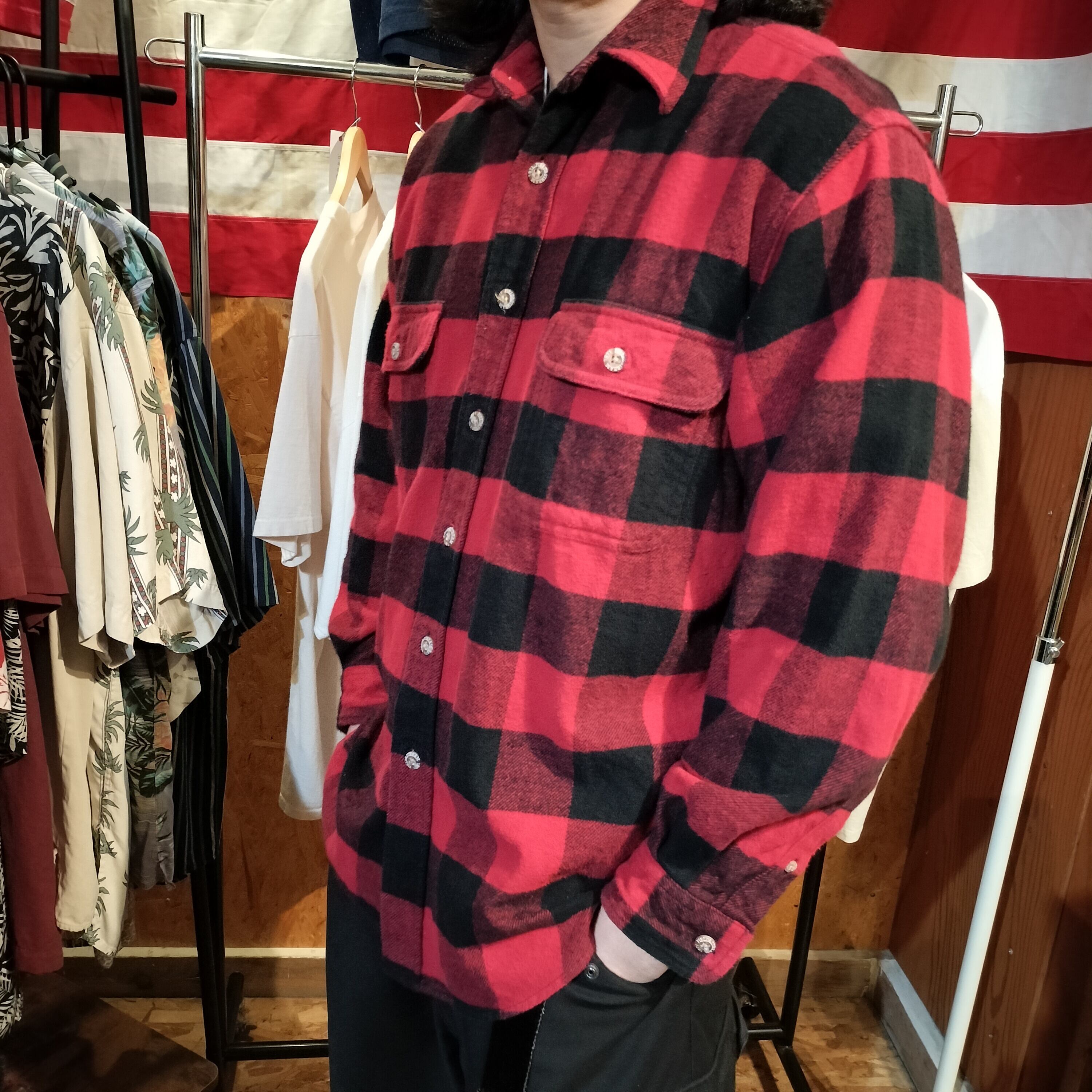 Used 長袖シャツ◆Mサイズ ヘビーネルシャツ バッファローチェック レッド◆ヴィンテージ 古着 アメリカン