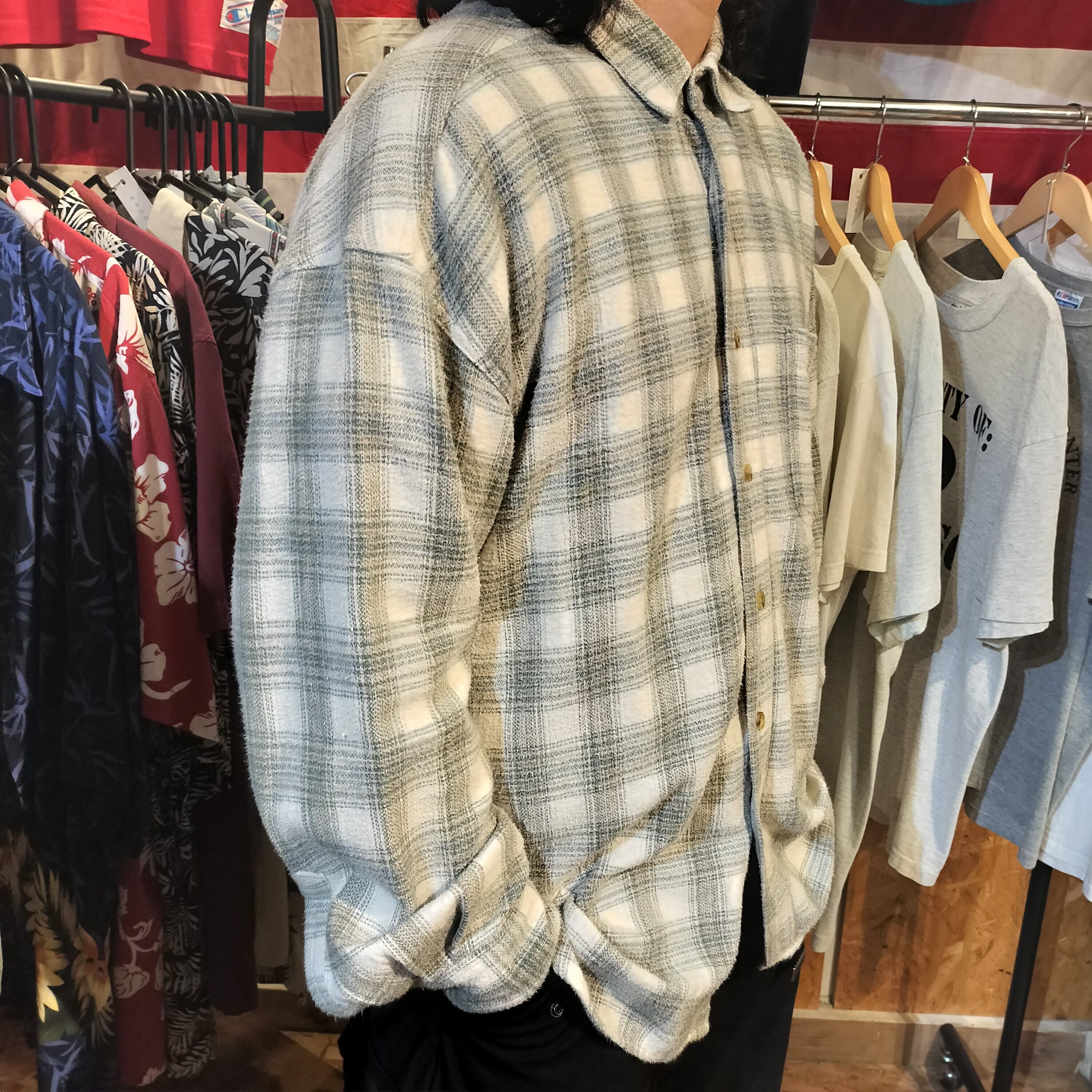 Used 長袖シャツ◆XLサイズ ライトグレー ネルシャツ◆ヴィンテージ 古着 アメリカン