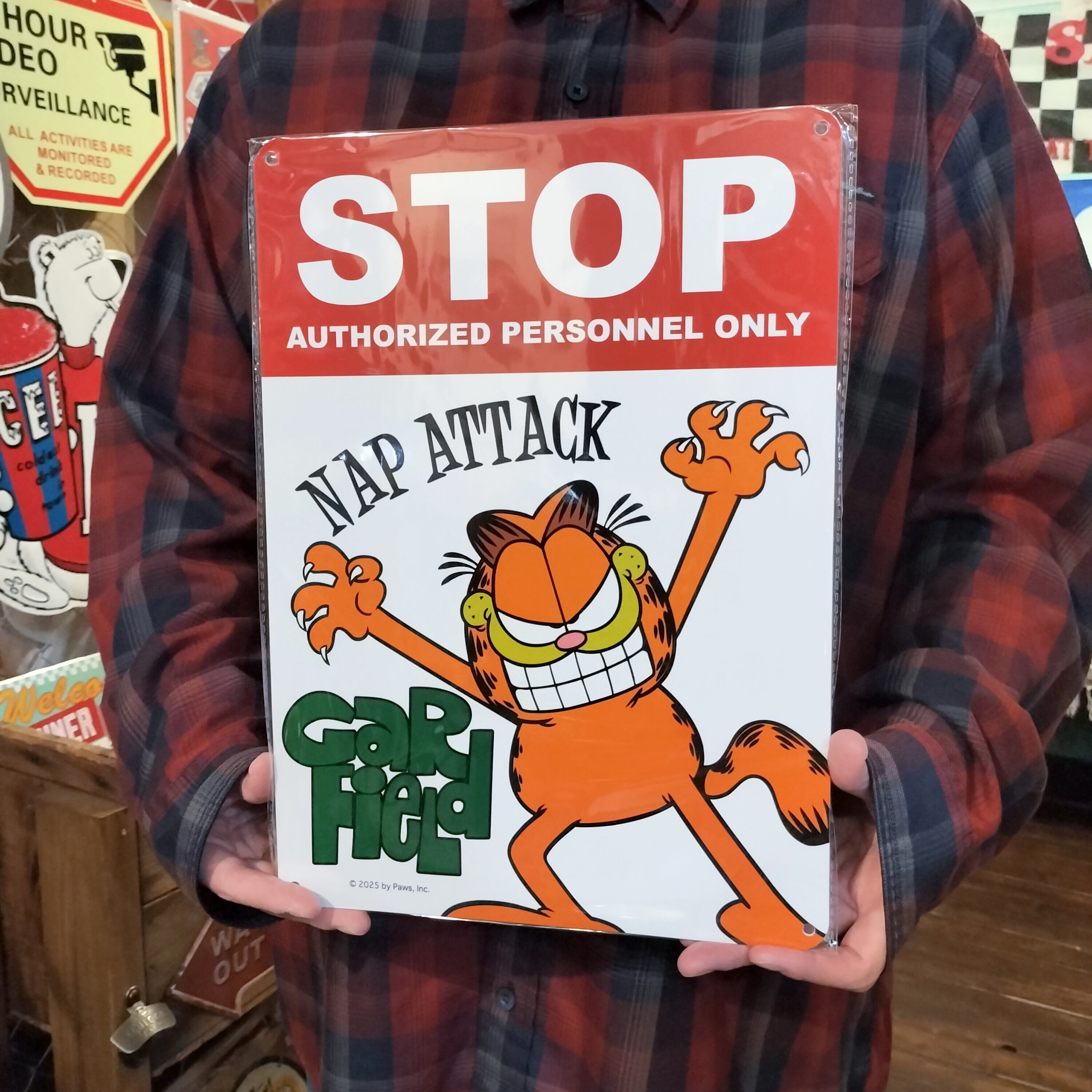 アメキャラ プラスチックサインボード/ガーフィールド ストップ/アメリカン雑貨 看板
