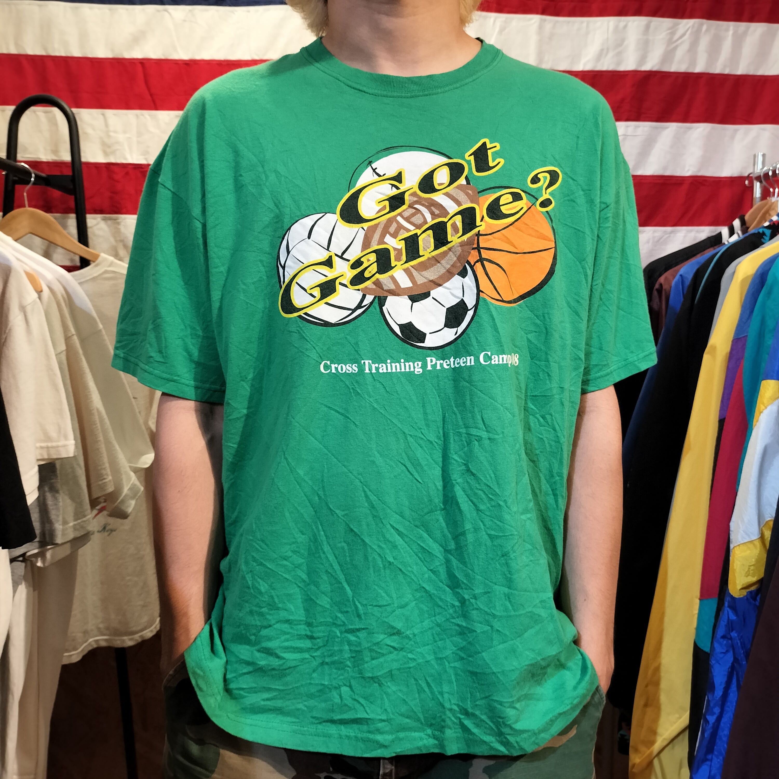Used Tシャツ◆XL Jerzees Zタグ スポーツプリント グリーン◆ヴィンテージ 古着 アメリカン
