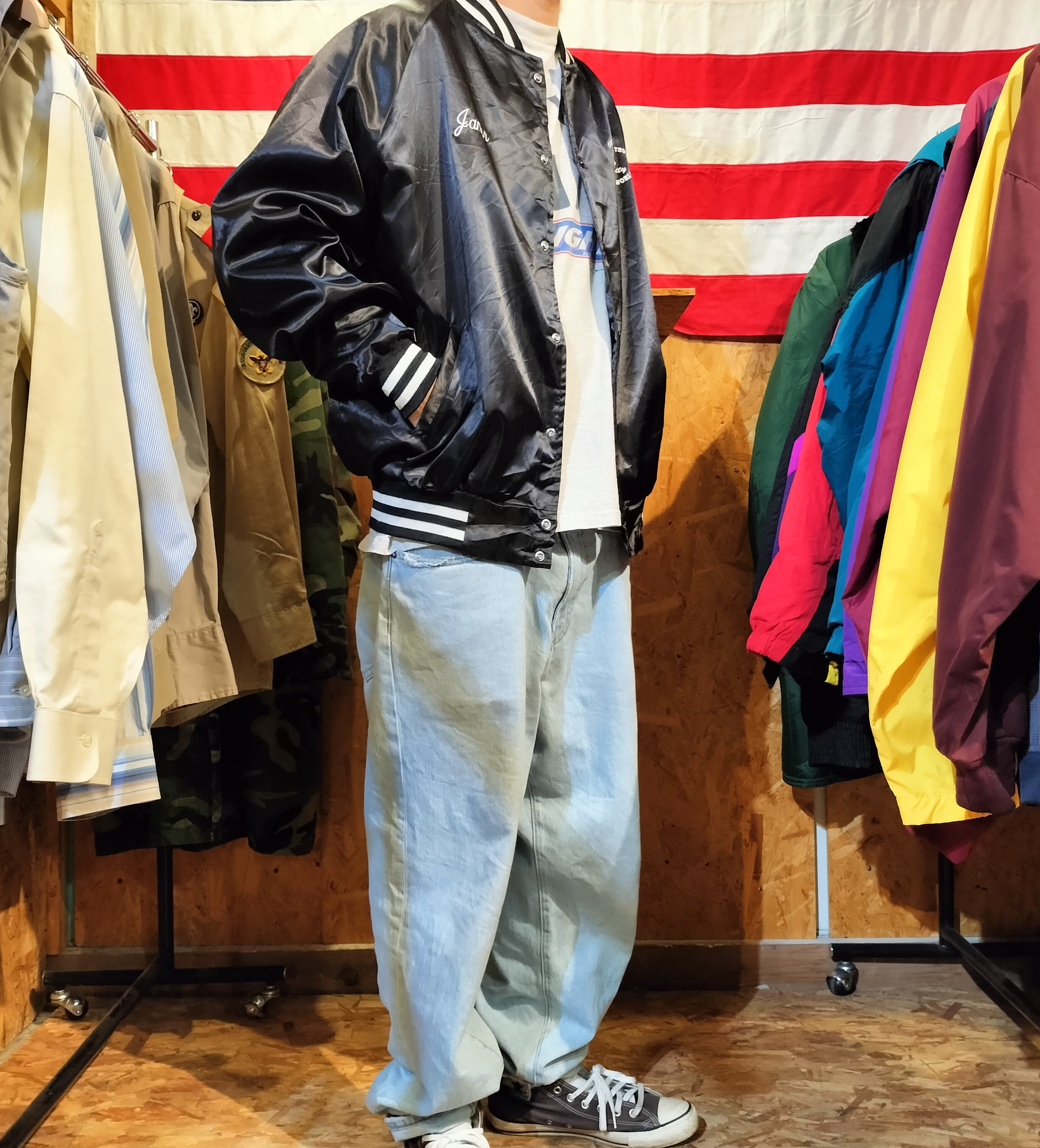 Used ジャケット◆XL 美品 USA製 ナイロンスタジャン ブラック◆ヴィンテージ USA古着