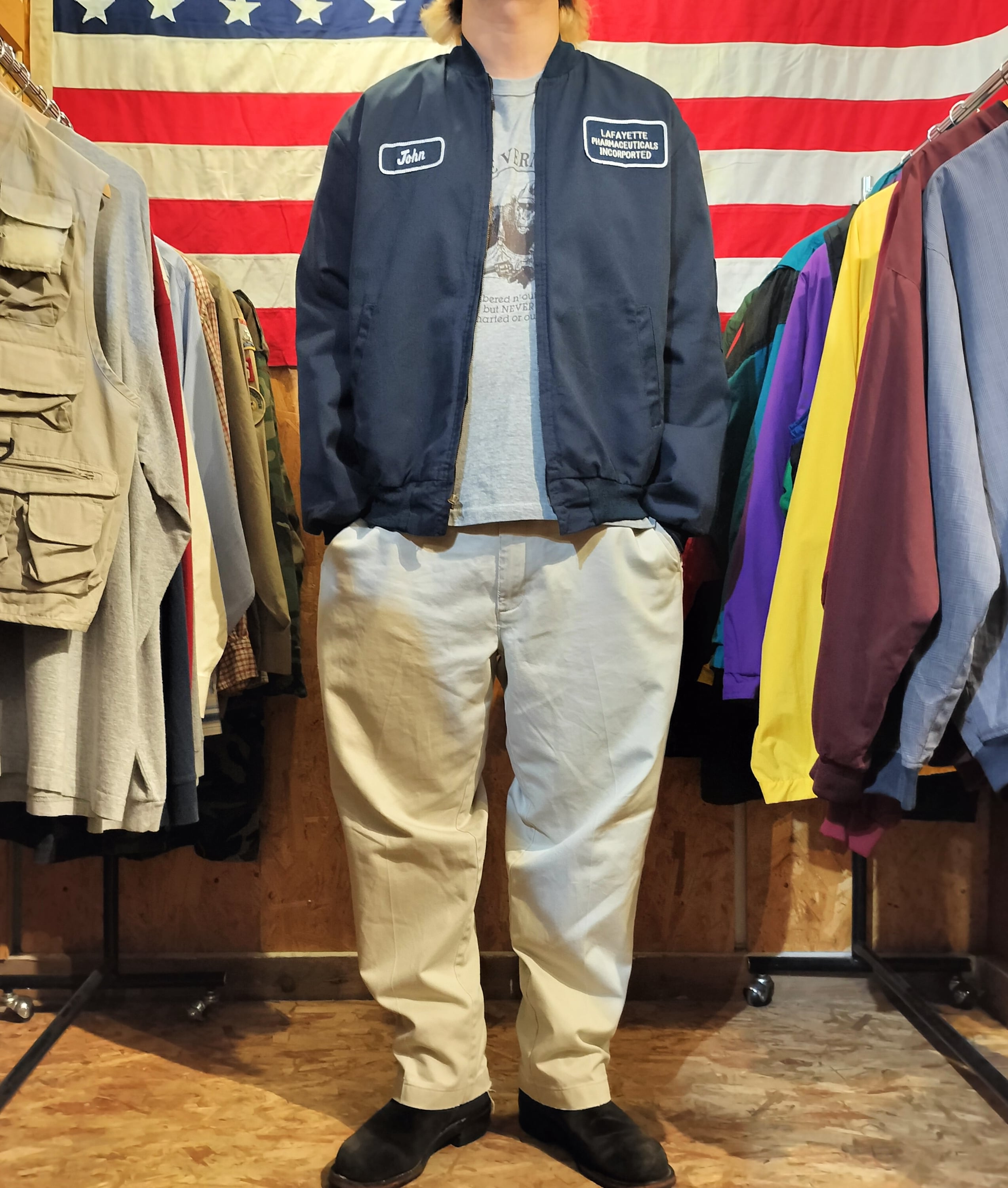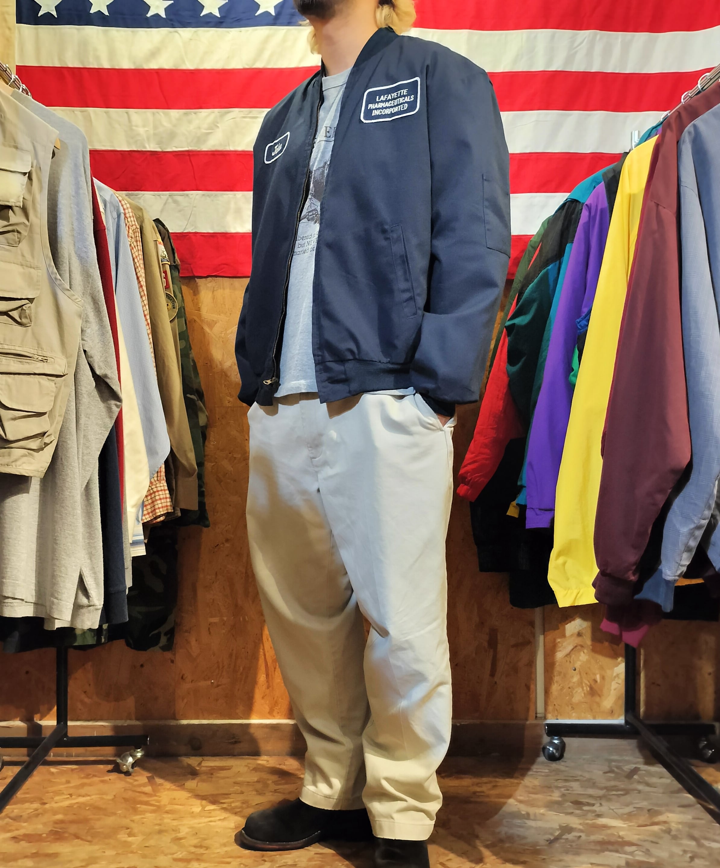 Used ジャケット◆L 濃紺 CiNTAS ワークジャケット ワッペン◆ヴィンテージ USA古着