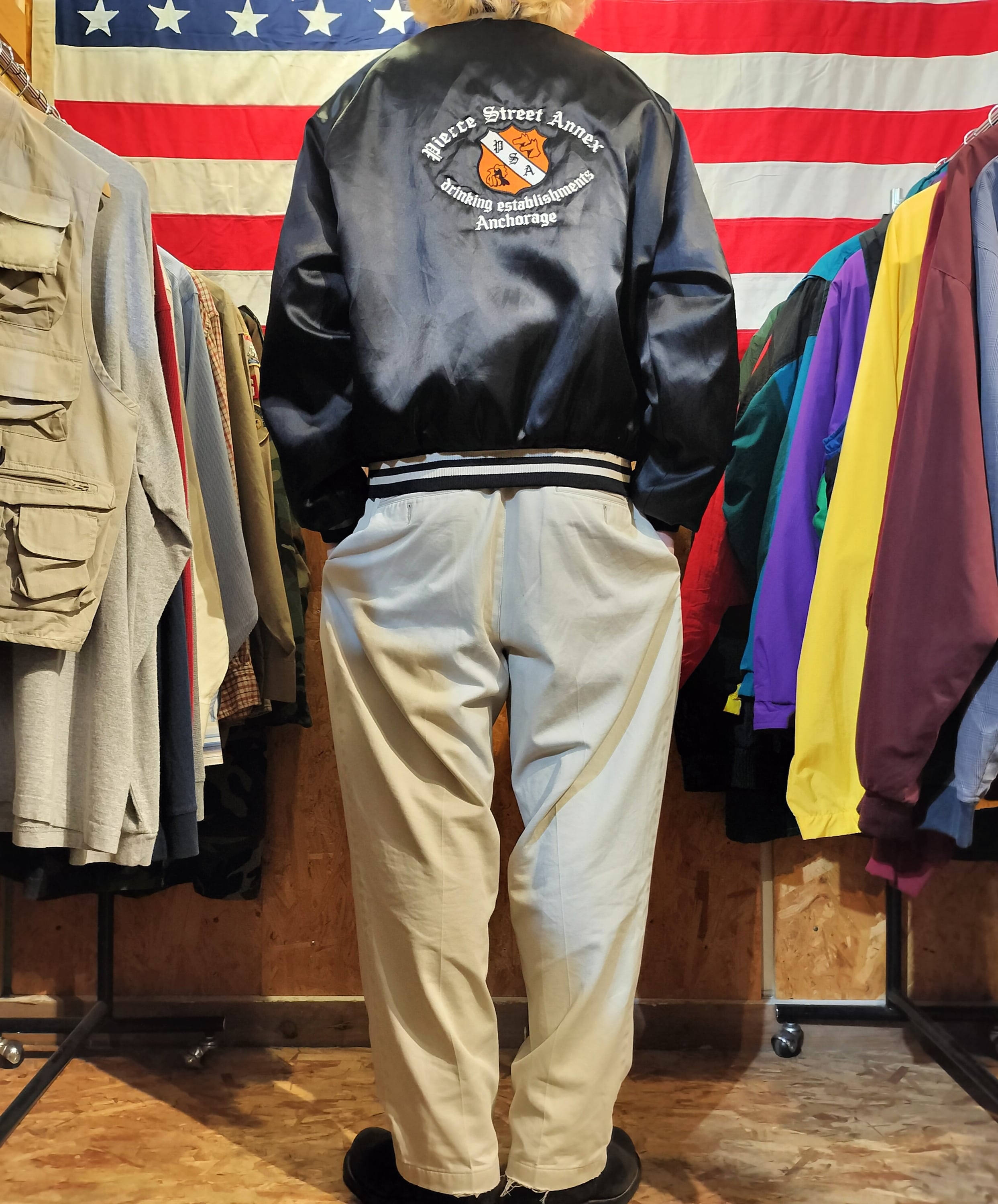 ◆80s KingLouie サテン ナイロンスタジャン 刺繍 ブラック アメリカ製