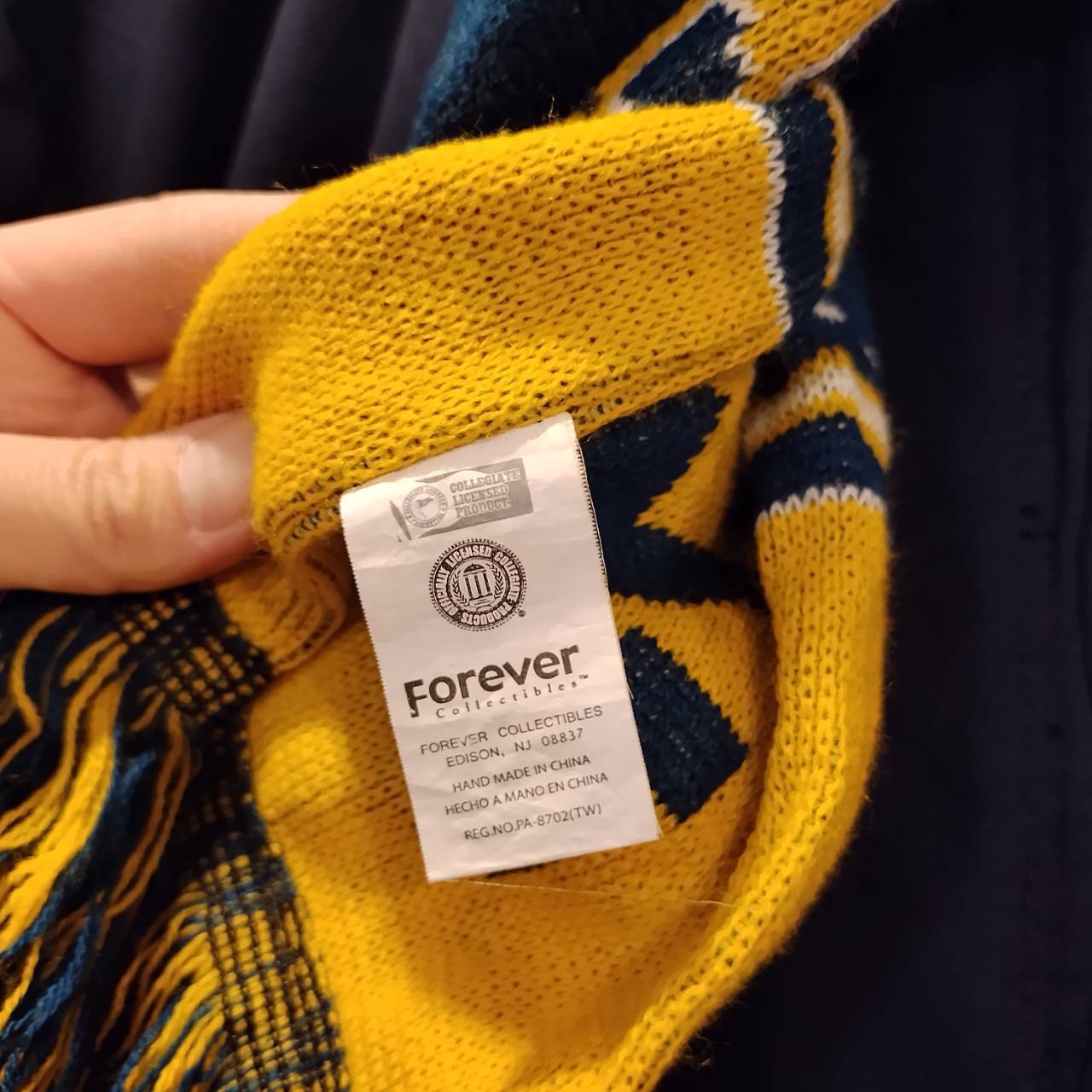 Used マフラー◆NCAA West Virginia Mountaineers ネイビー×イエロー◆USA古着 サッカーマフラー