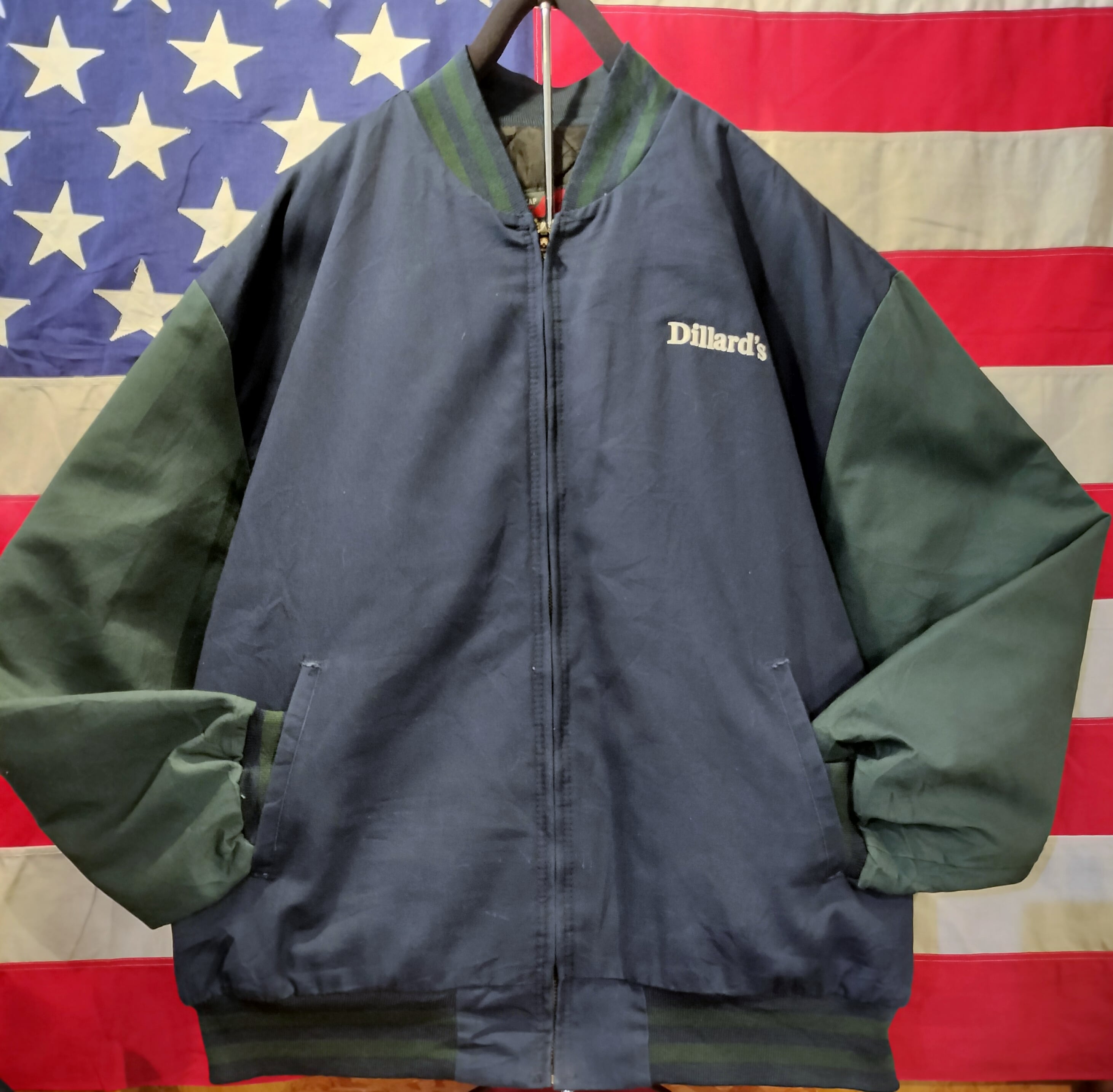 ◆00年代 メキシコ製レッドキャップ ワークジャケット スタジャン ネイビー×ダークグリーン 裏地有り ワンポイント刺繍 無地 キルティング 肉厚 短丈