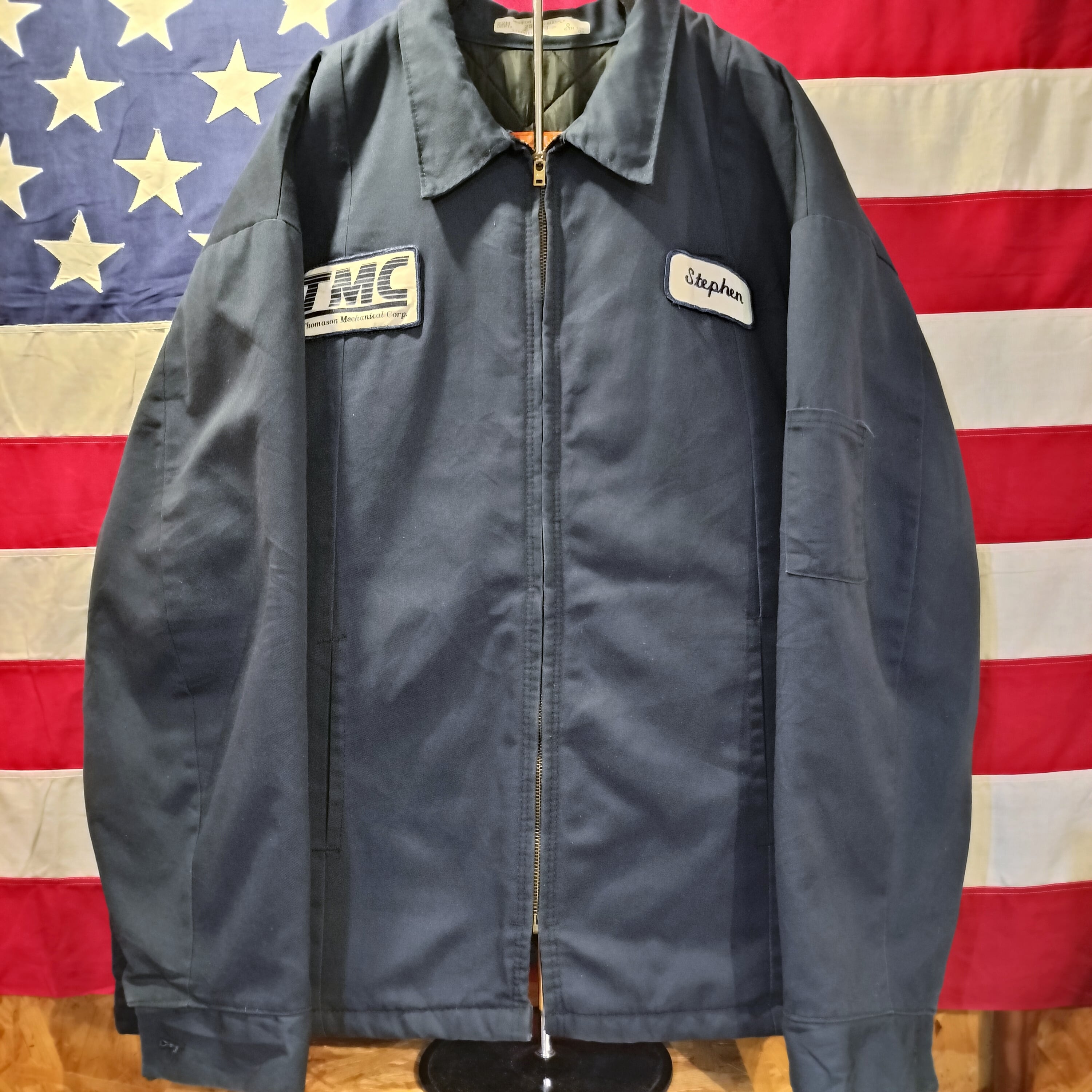 ◆メキシコ製 レッドキャップ ワッペン ワークジャケット ネイビー 裏地有り キルティング YKKジップ