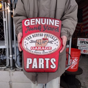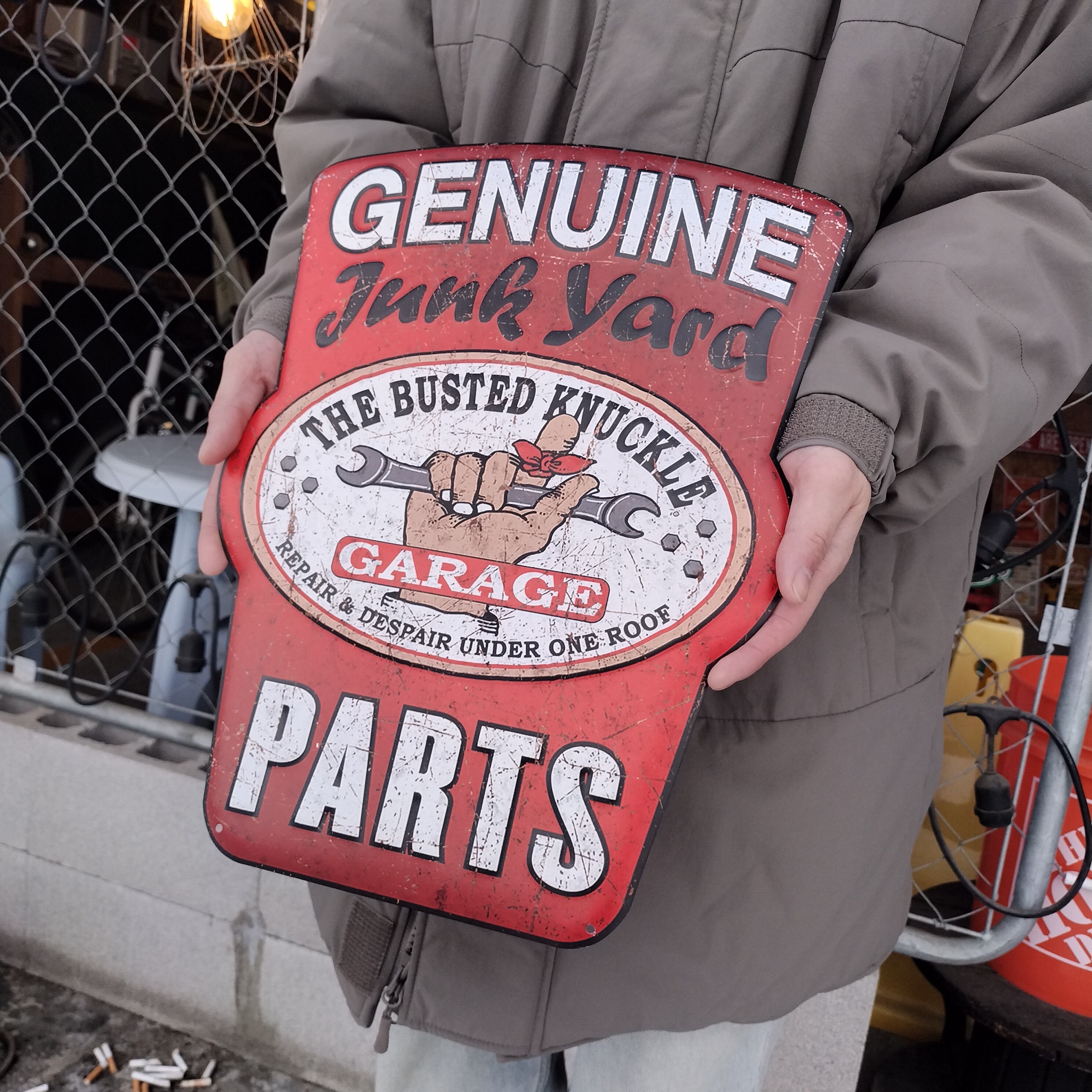 アンティークアメリカンエンボスサイン◆Busted Garage◆ブリキ看板 ダイカット ショップ