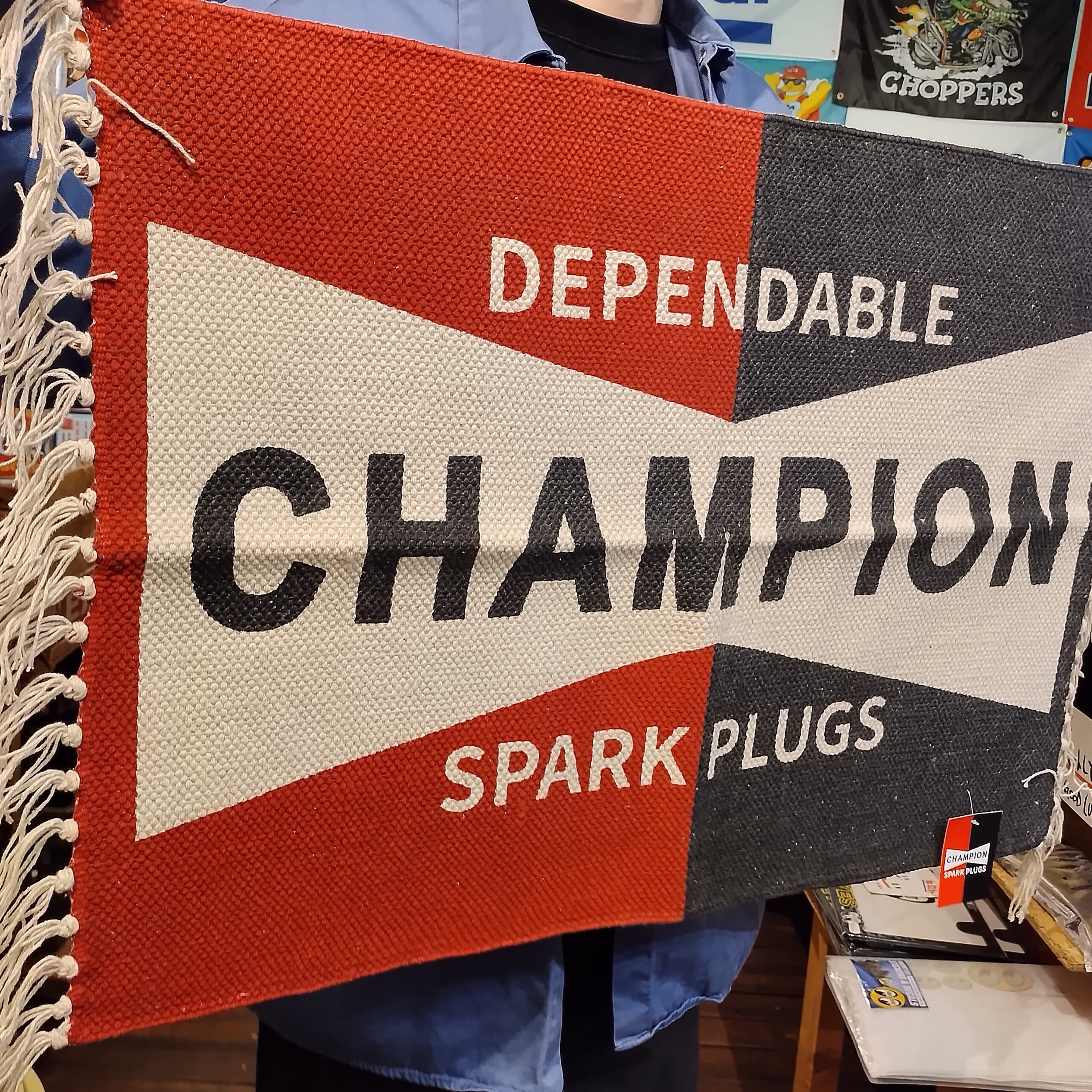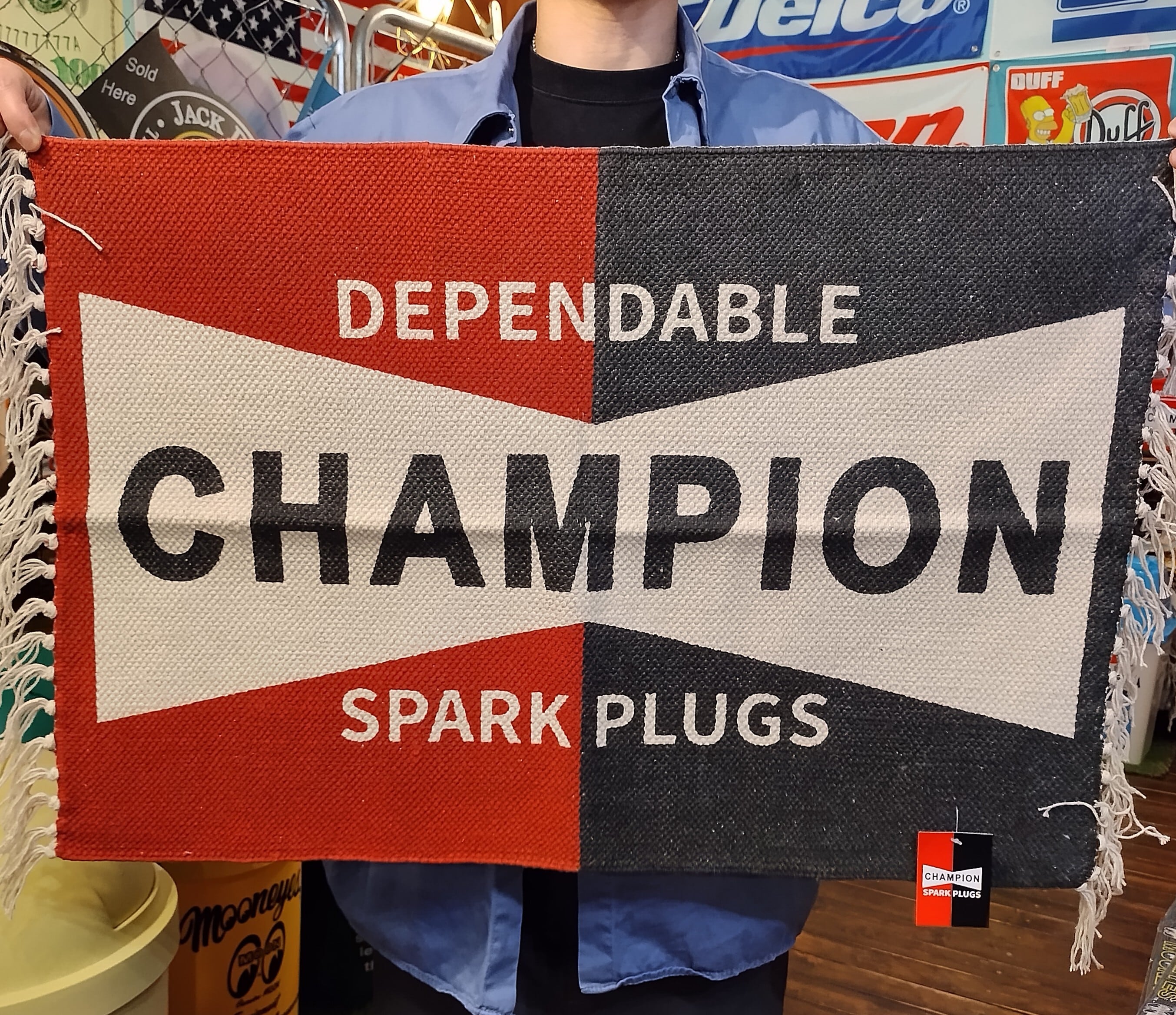 コットンフリンジマット◆CHAMPION チャンピオン/ショートサイズ◆玄関 キッチン タペストリー アメリカン雑貨