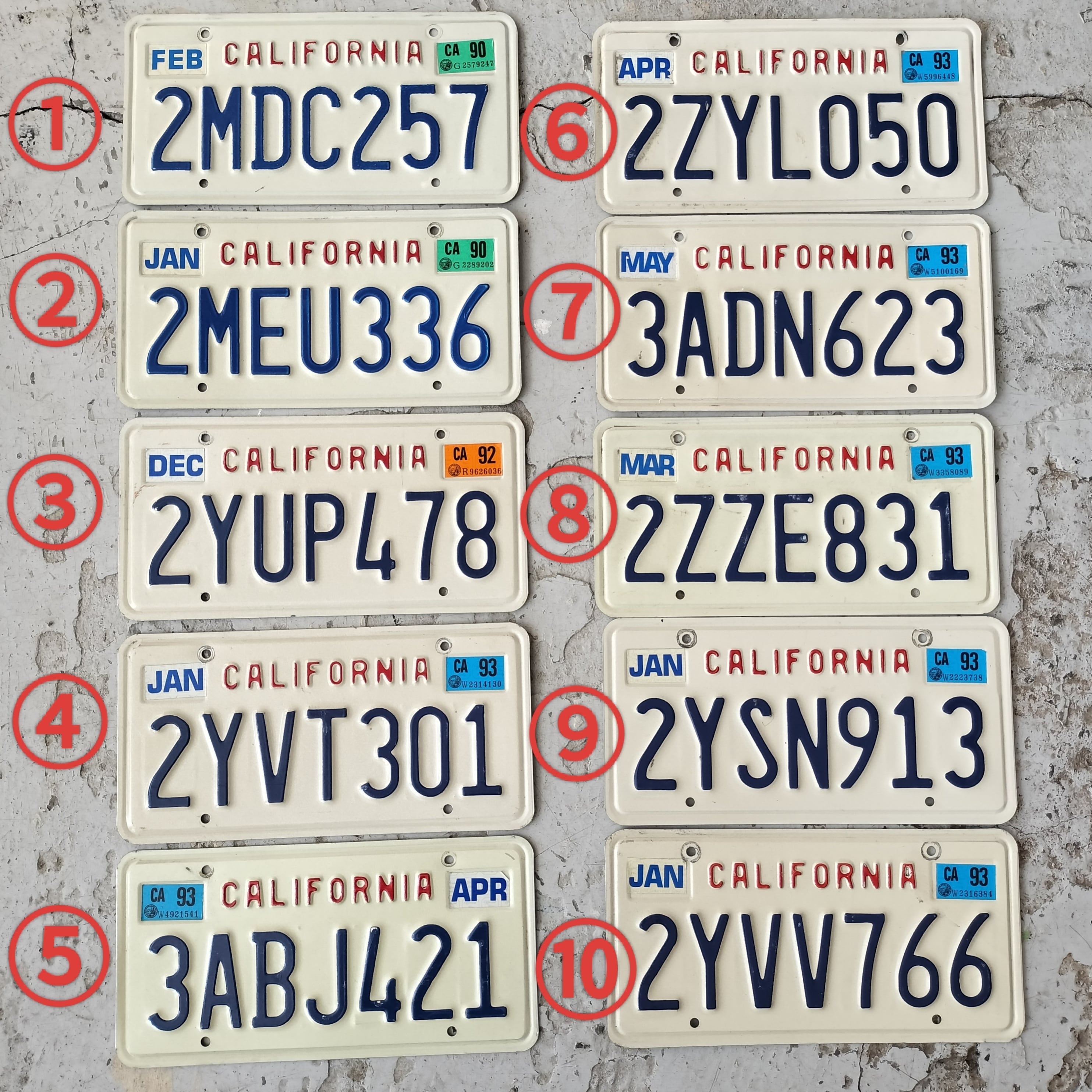 USEDのナンバープレートの中でも極めて人気の高いカリフォルニア州のものだけ集めました。希少なブロック体の表記になります。