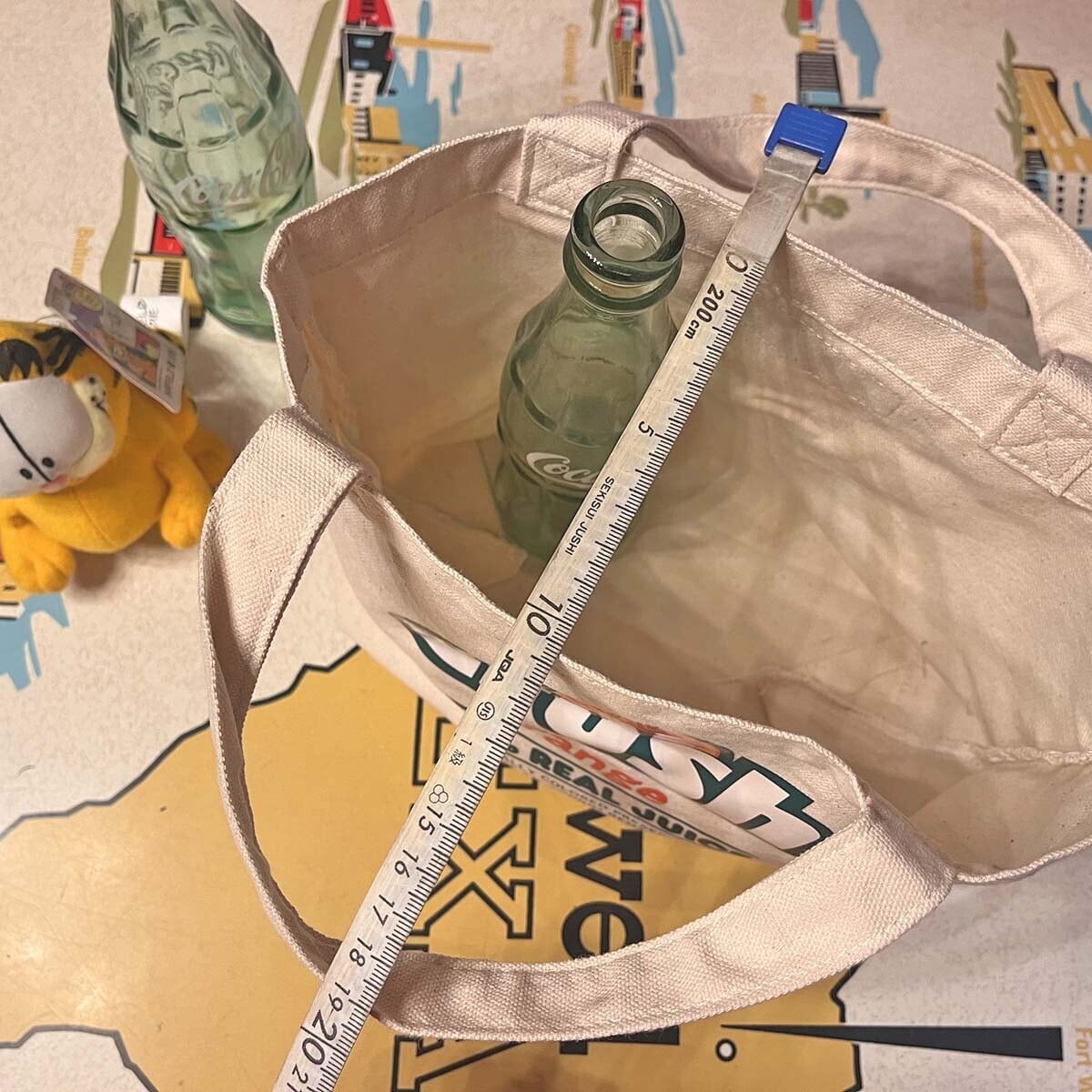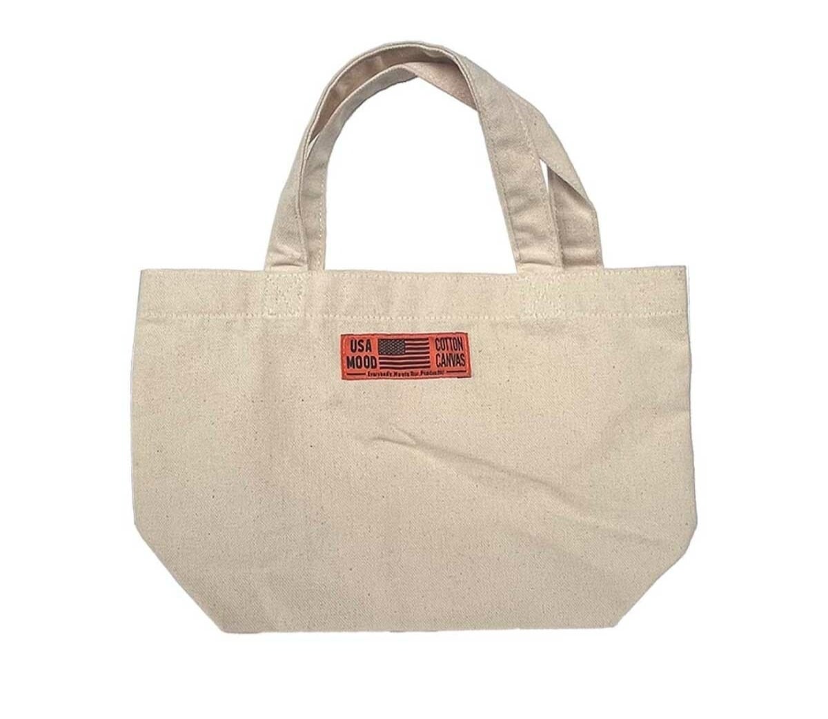 しっかりとしたキャンバス生地に10cmのマチがあるのでお弁当+水筒くらいは入ります!