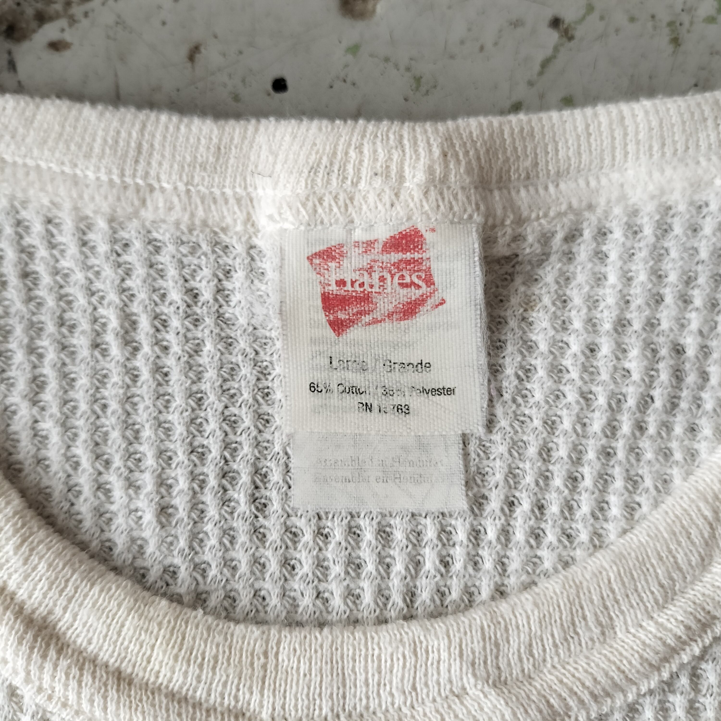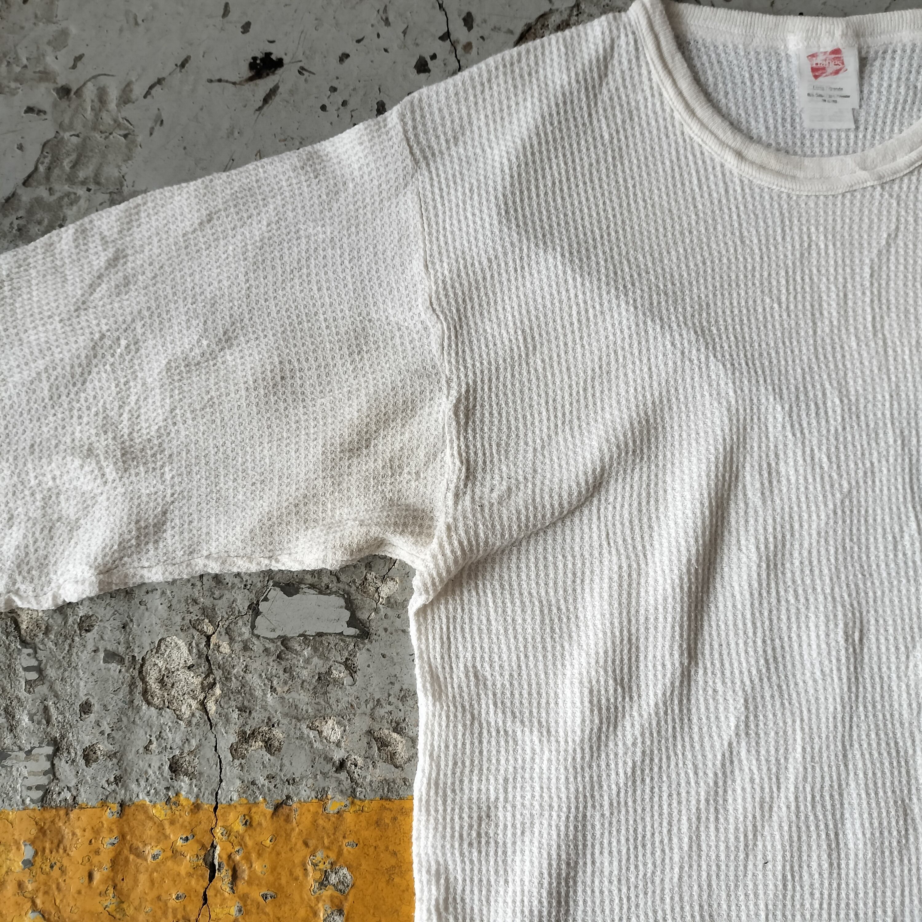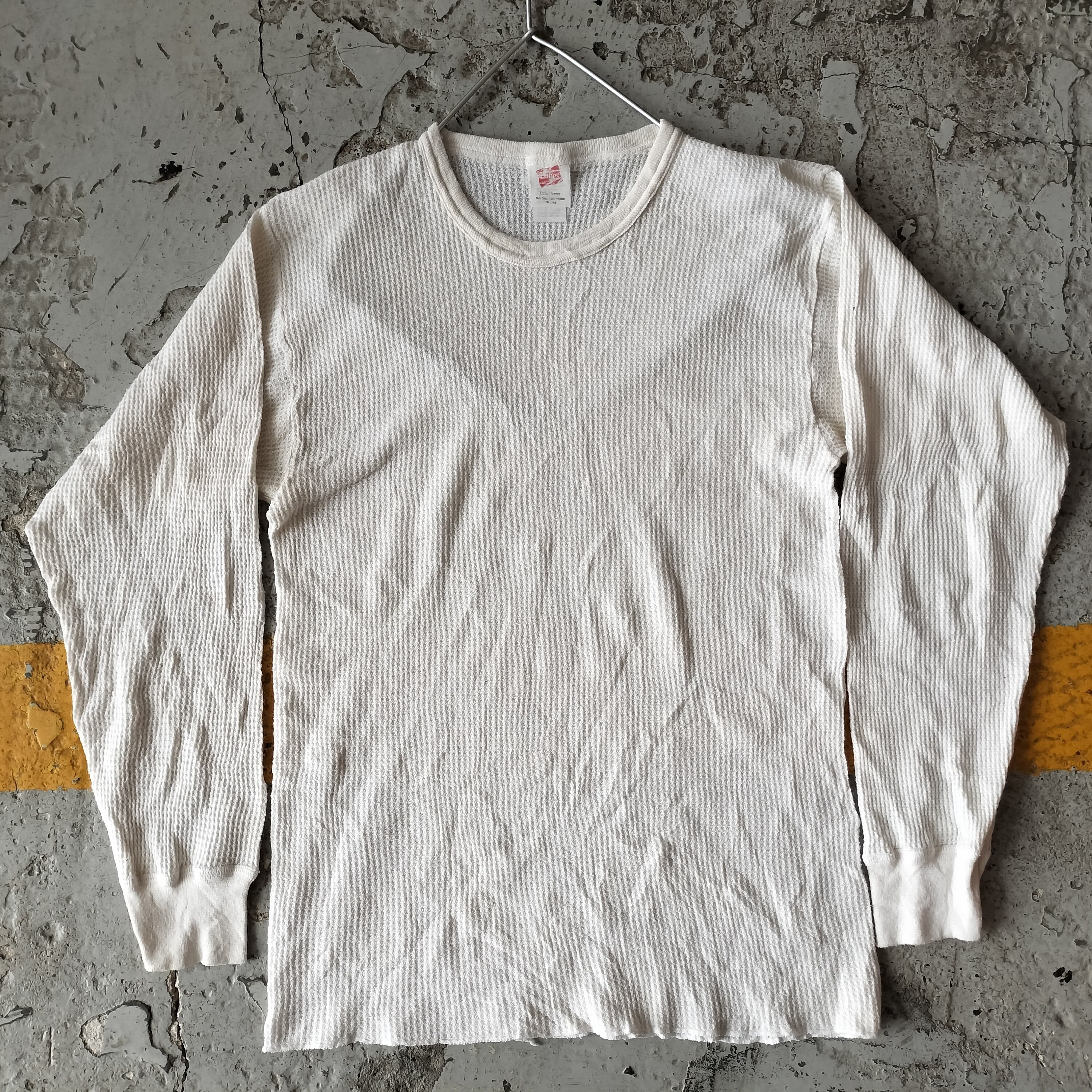 Used 長袖◆L Hanes サーマル ワッフル ロンT ホワイト◆USA古着 ヴィンテージ