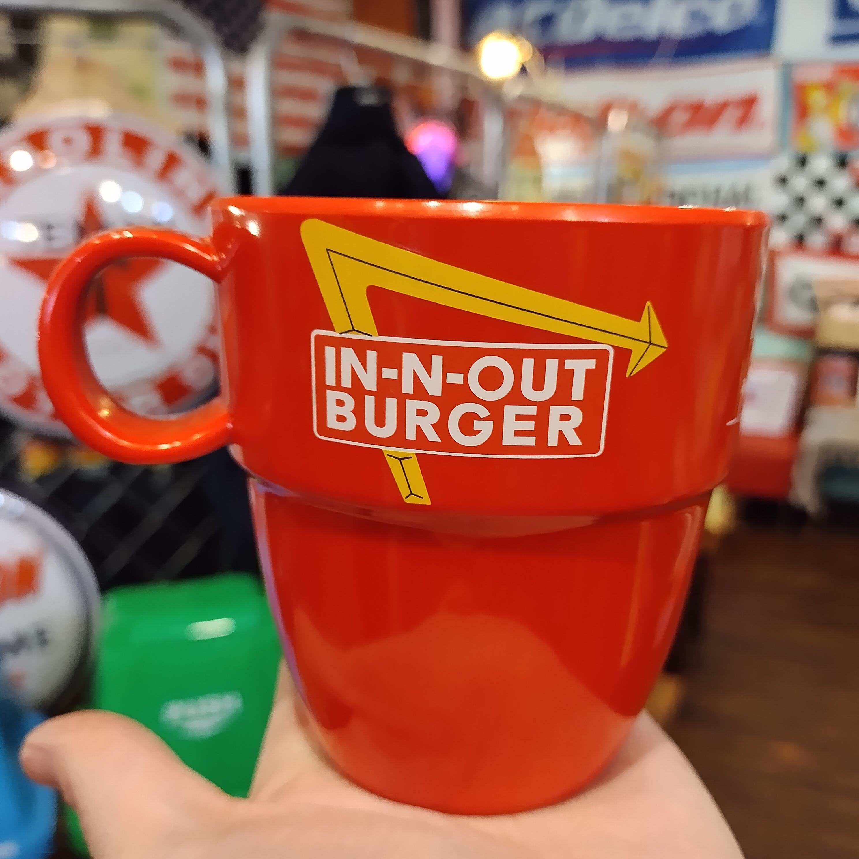 USアドバタイジング◆メラミンマグ◆スタッキングマグ IN OUT インナウト◆コップ ディスプレイ アメリカン雑貨 マグカップ