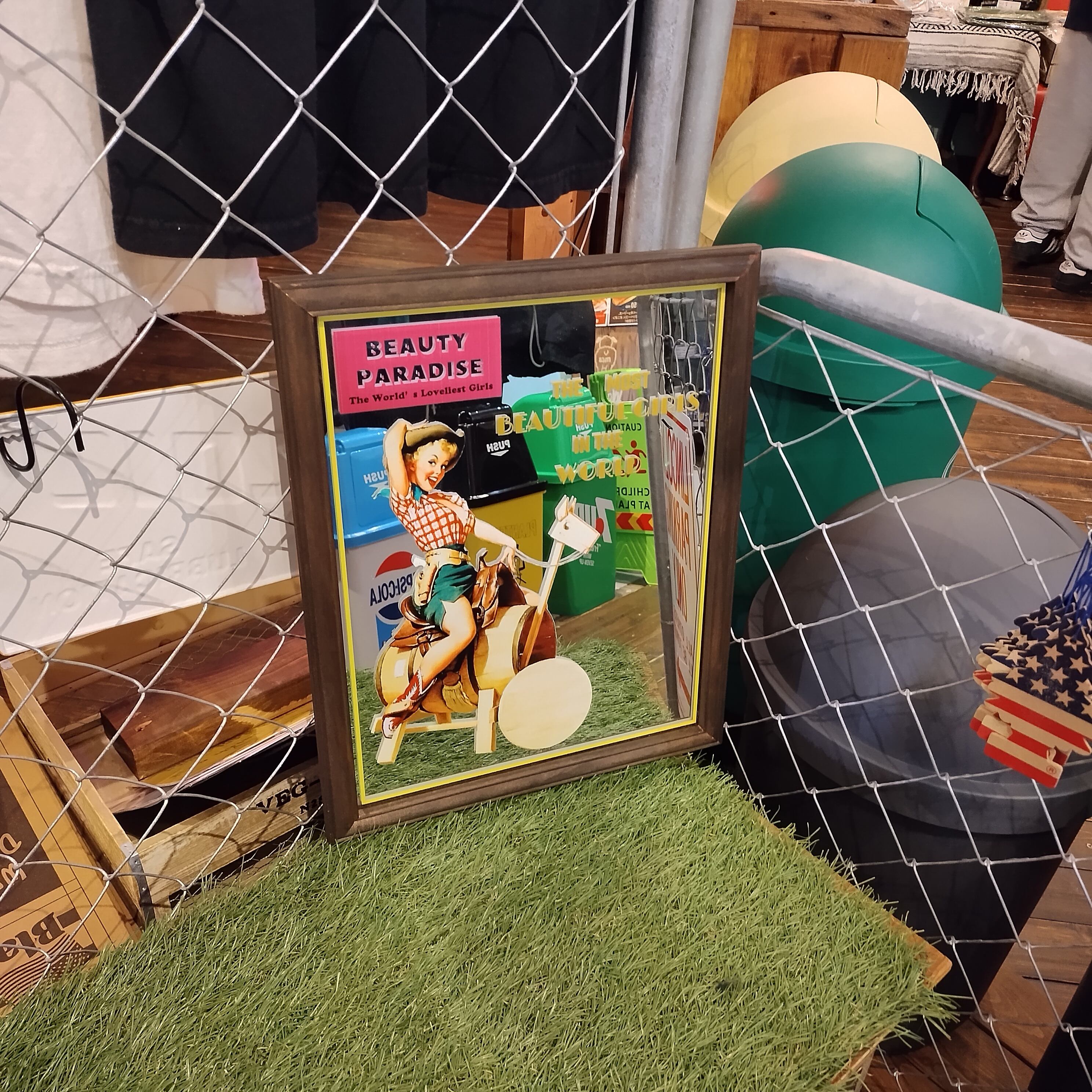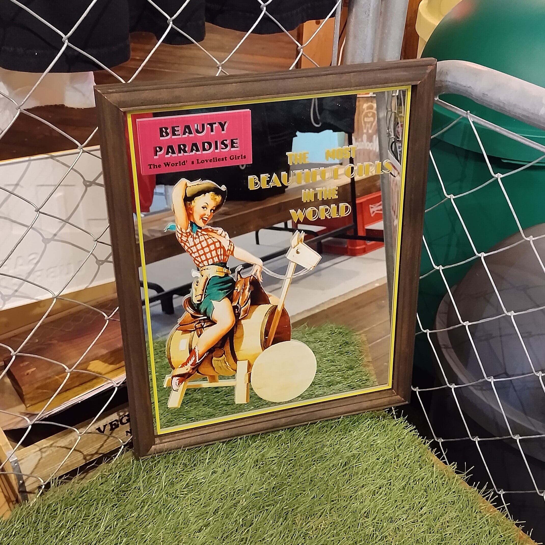 アメリカンレトロ ウッドミラー/cow girl/アメリカン雑貨 インテリア 鏡 看板