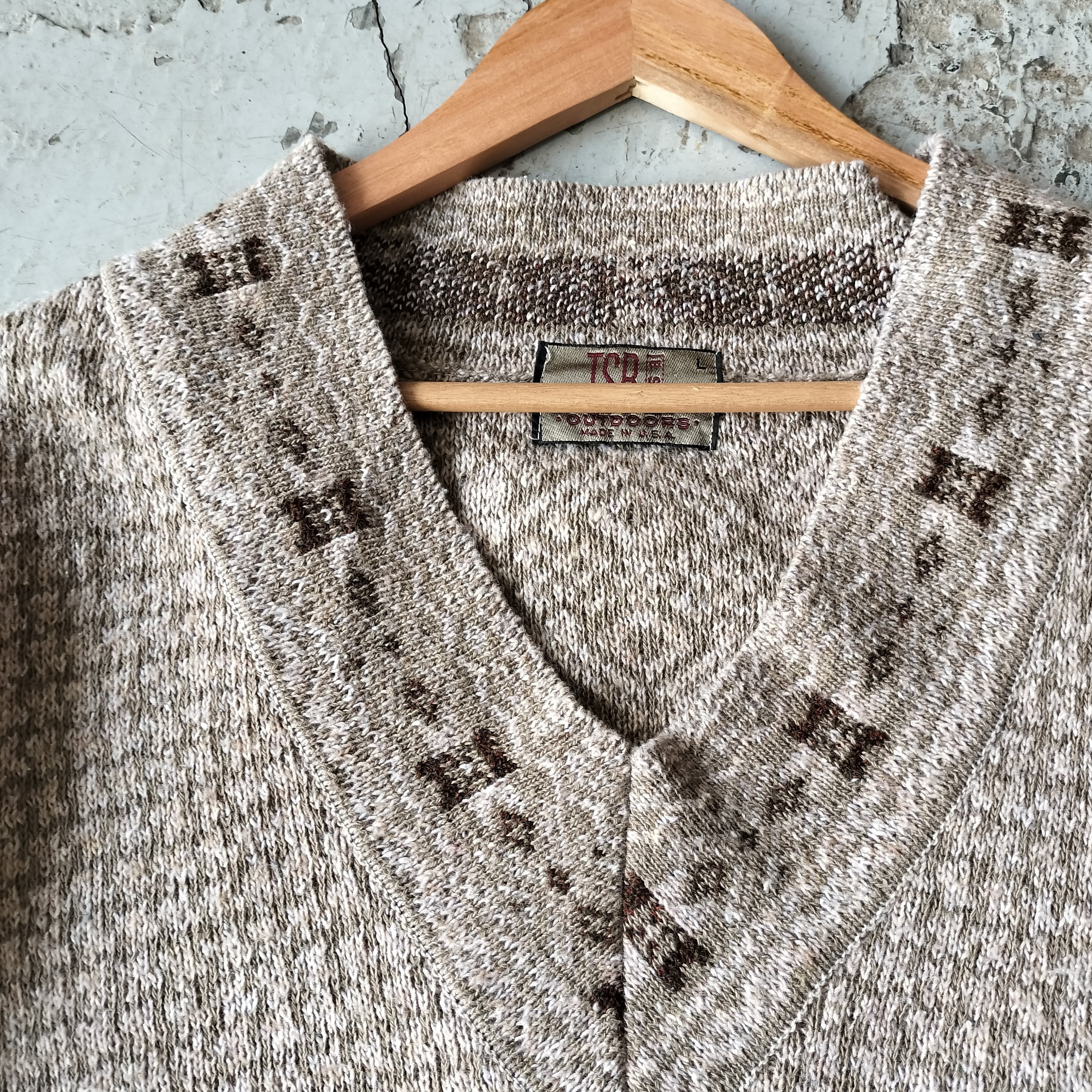 ◆90年代〜 ヴィンテージ TSR OUTDOORS チルデンニット Vネックニット セーター ベージュ ブラウン