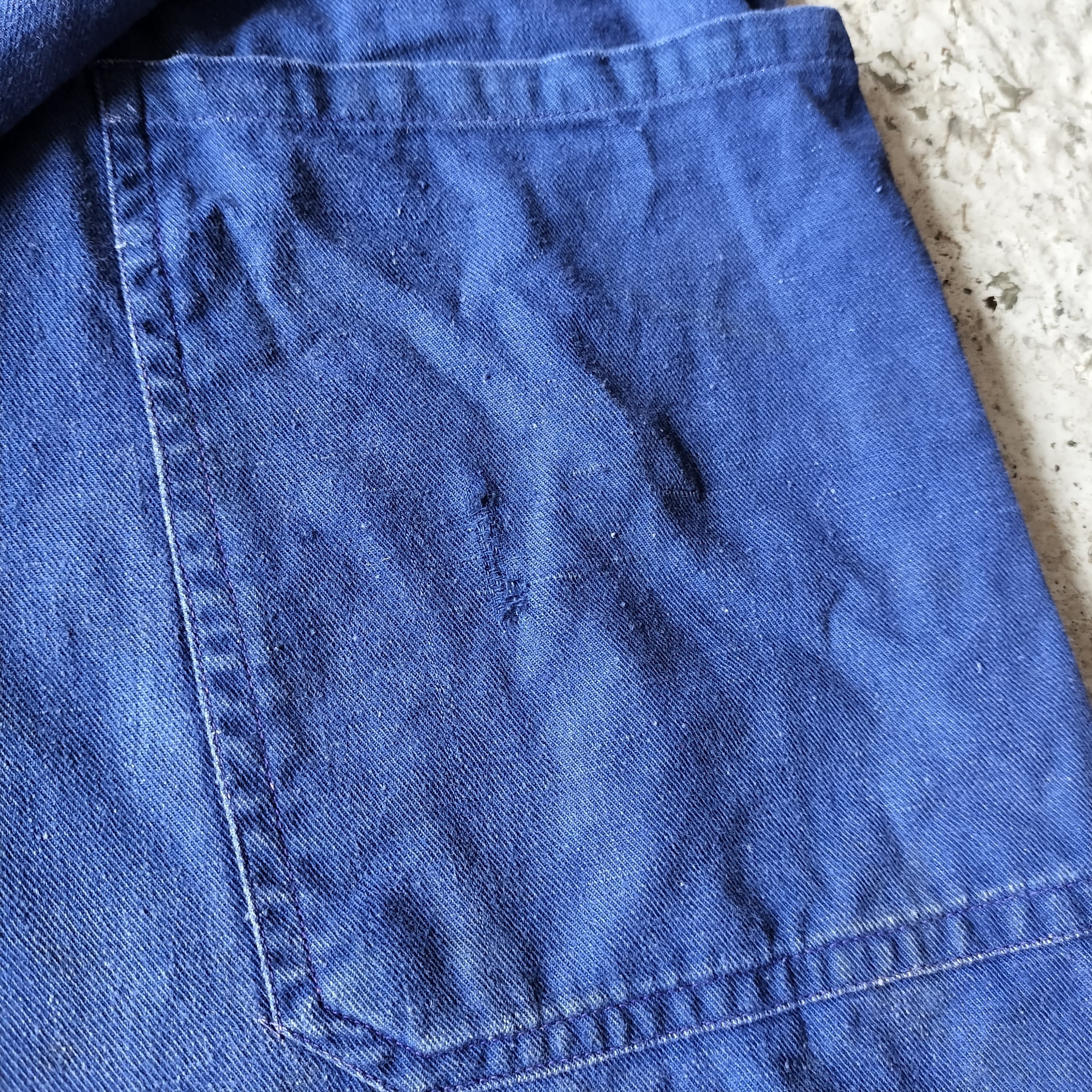 ボディはコットンツイル地。ユーロウェアに見られるインクブルーが経年変化によって出てきたアタリ部分は新品からは表現出来ない見事な仕上がり。