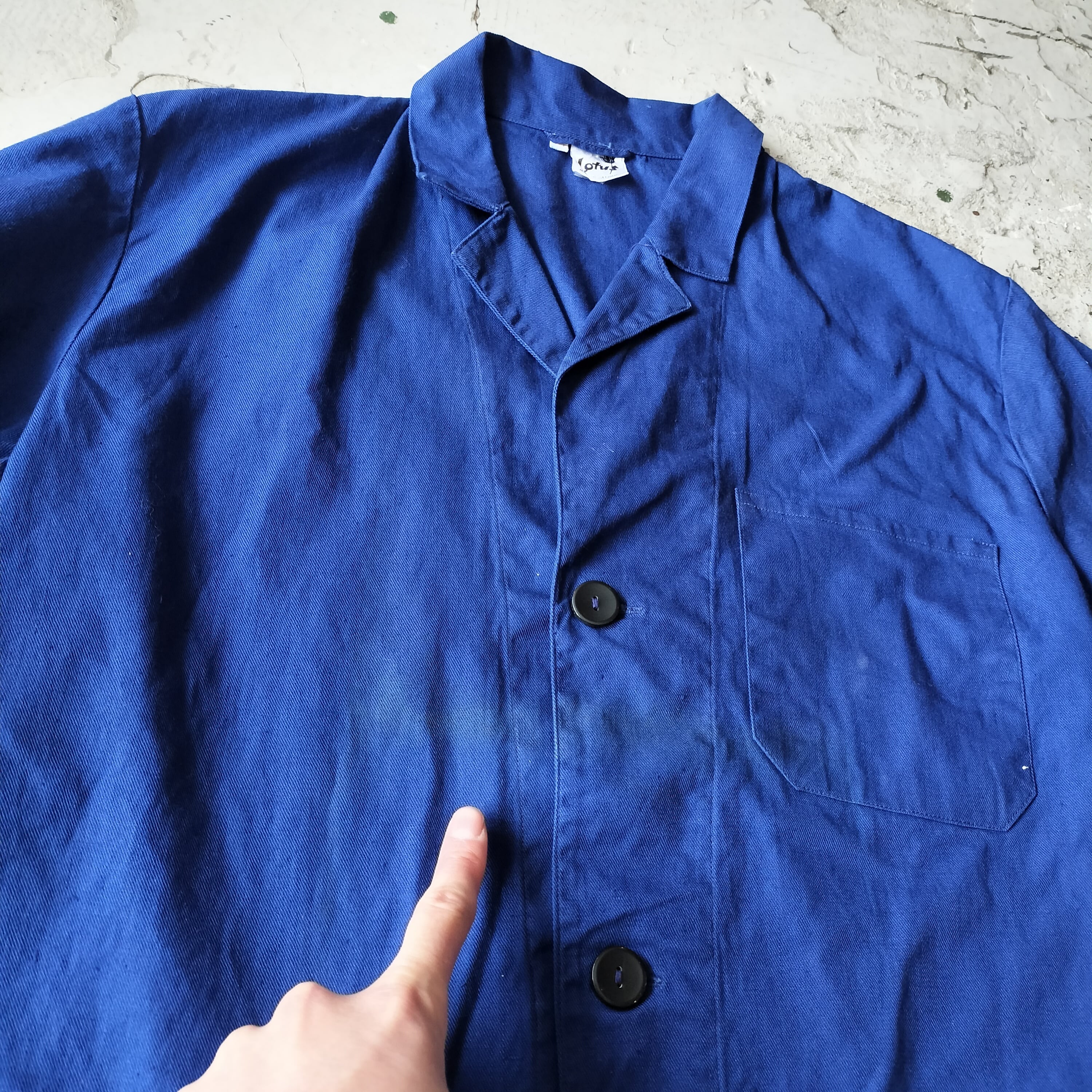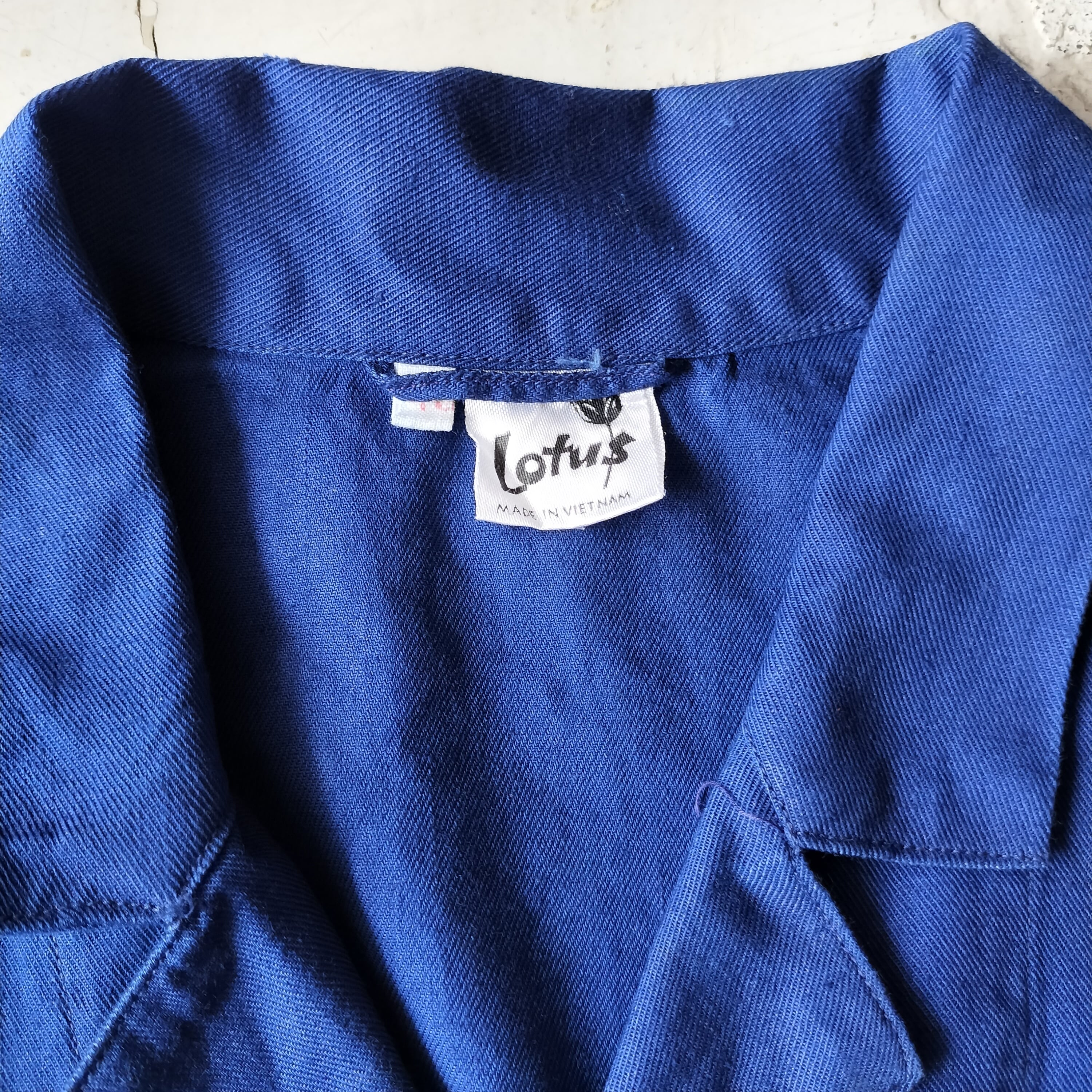 ◆ロータス ユーロヴィンテージ フランス ベトナム ワークコート ジャケット ショップコート アトリエコート フレンチ インクブルー