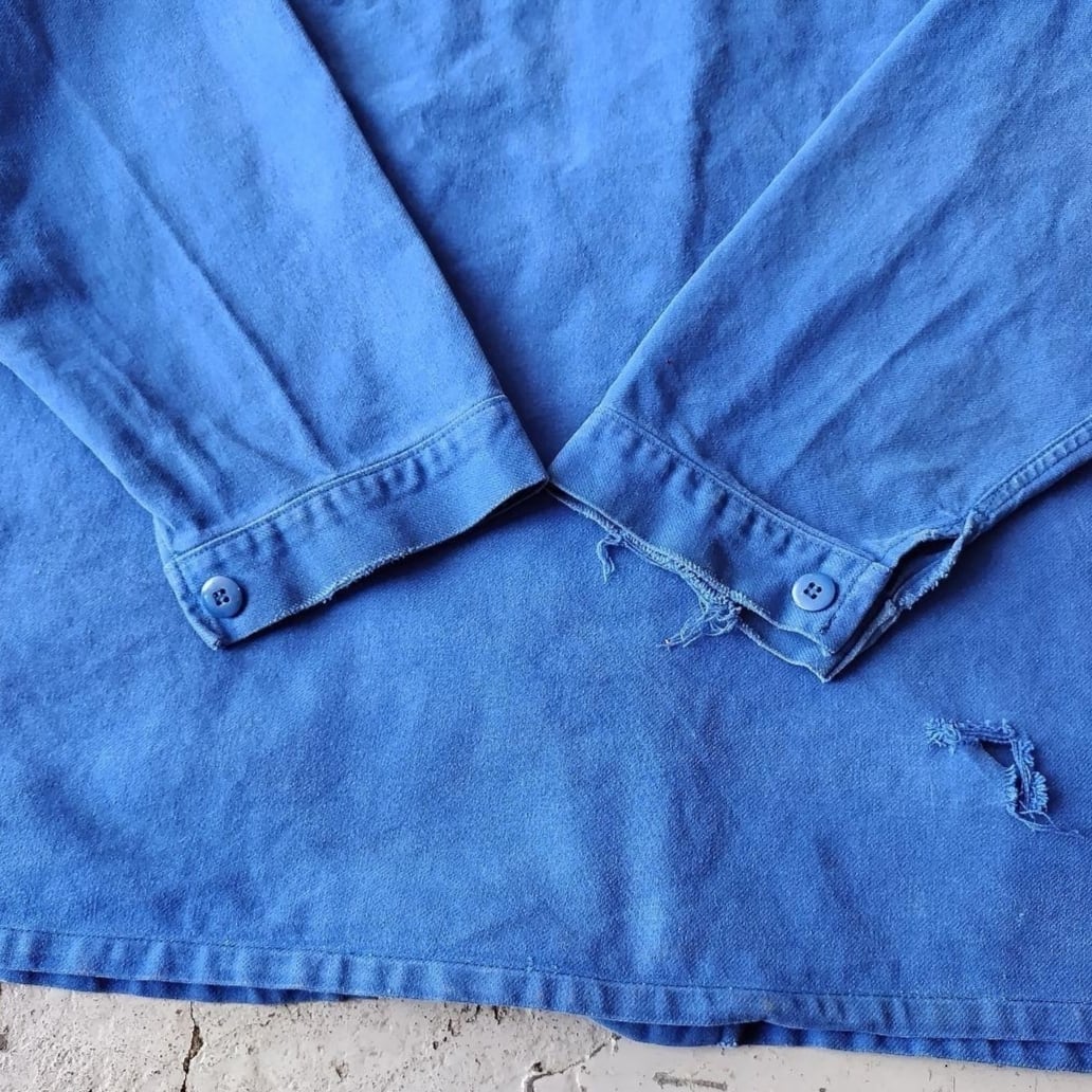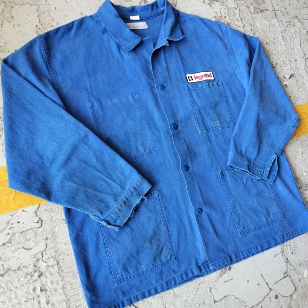 背中に破れ有り、袖とポケットに軽度なダメージ有り、その他目立つダメージなく良好です!珍しいオランダの老舗ワークウェアによるビッグサイズのジャケットです。