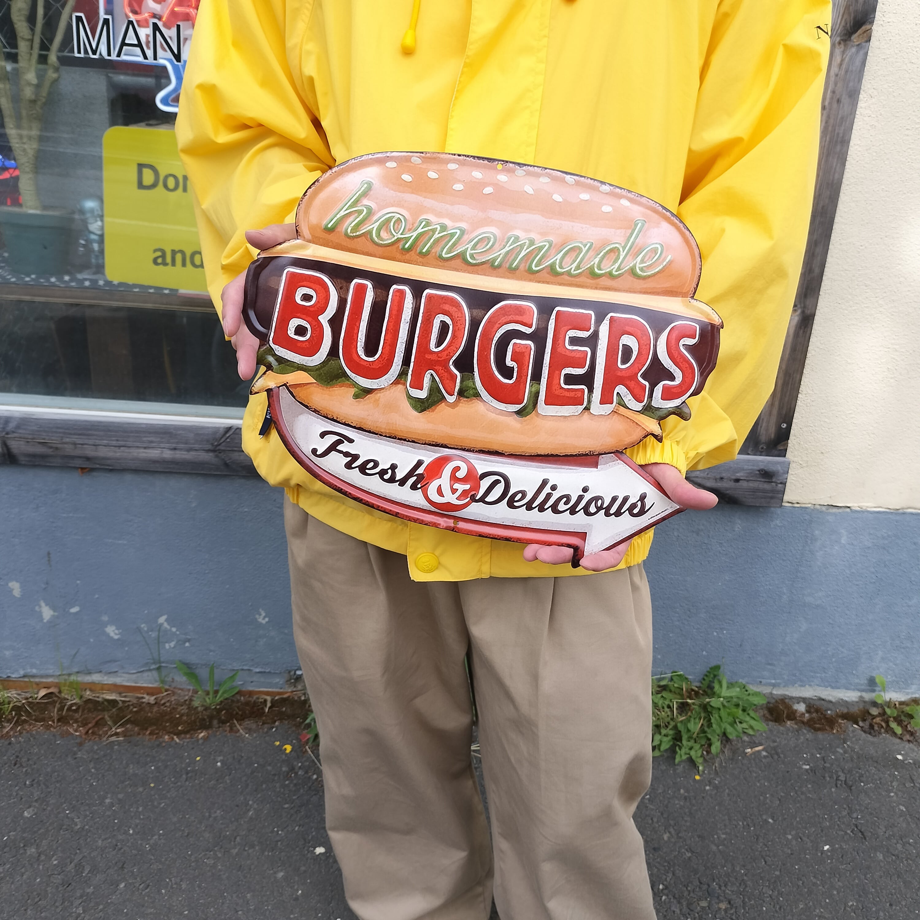 アンティークアメリカンエンボスサイン◆ハンバーガー◆ブリキ看板 ダイカット ショップ