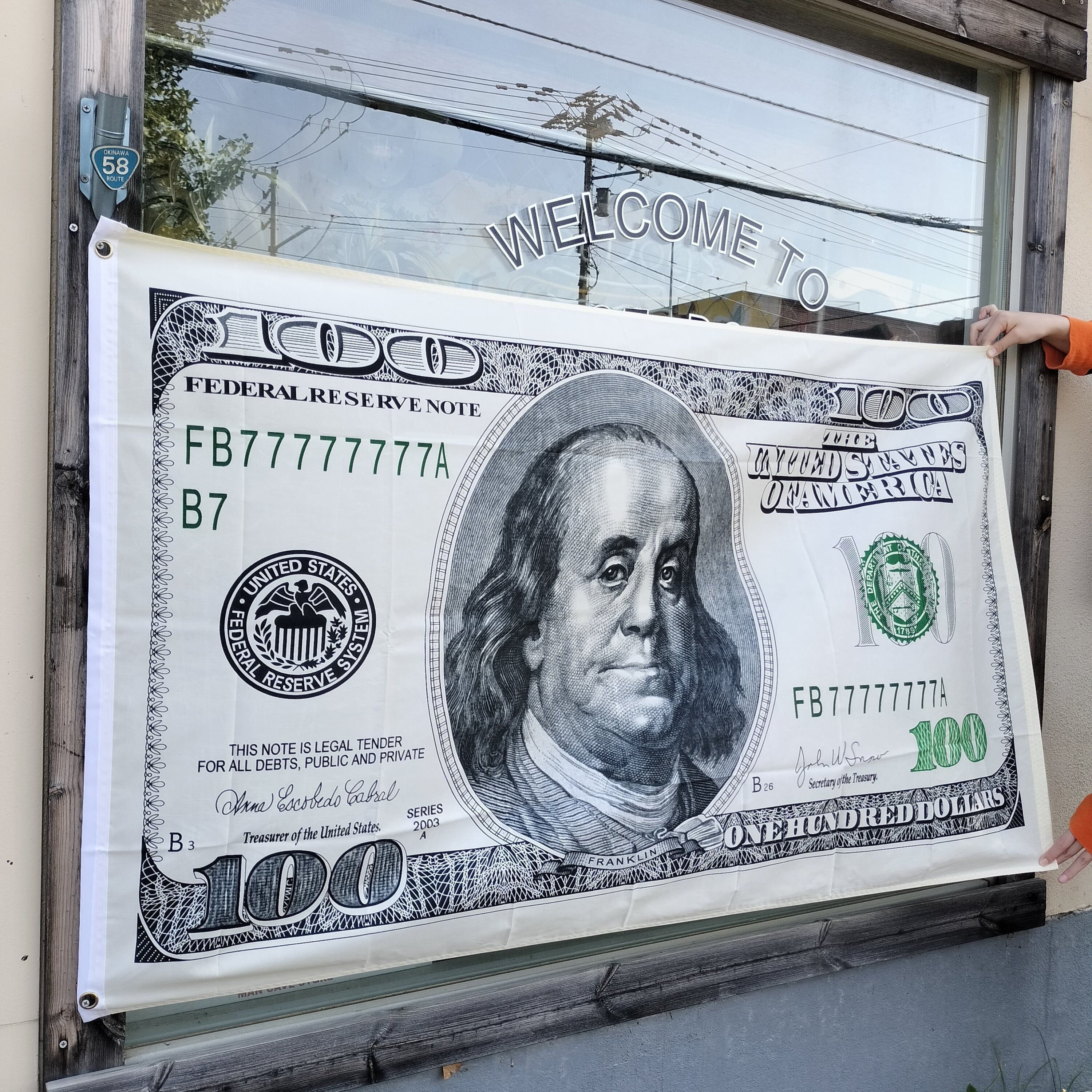ビッグサイズ◆ガレージフラッグ・タペストリー 100ドル札◆アメリカン バナー ディスプレイ