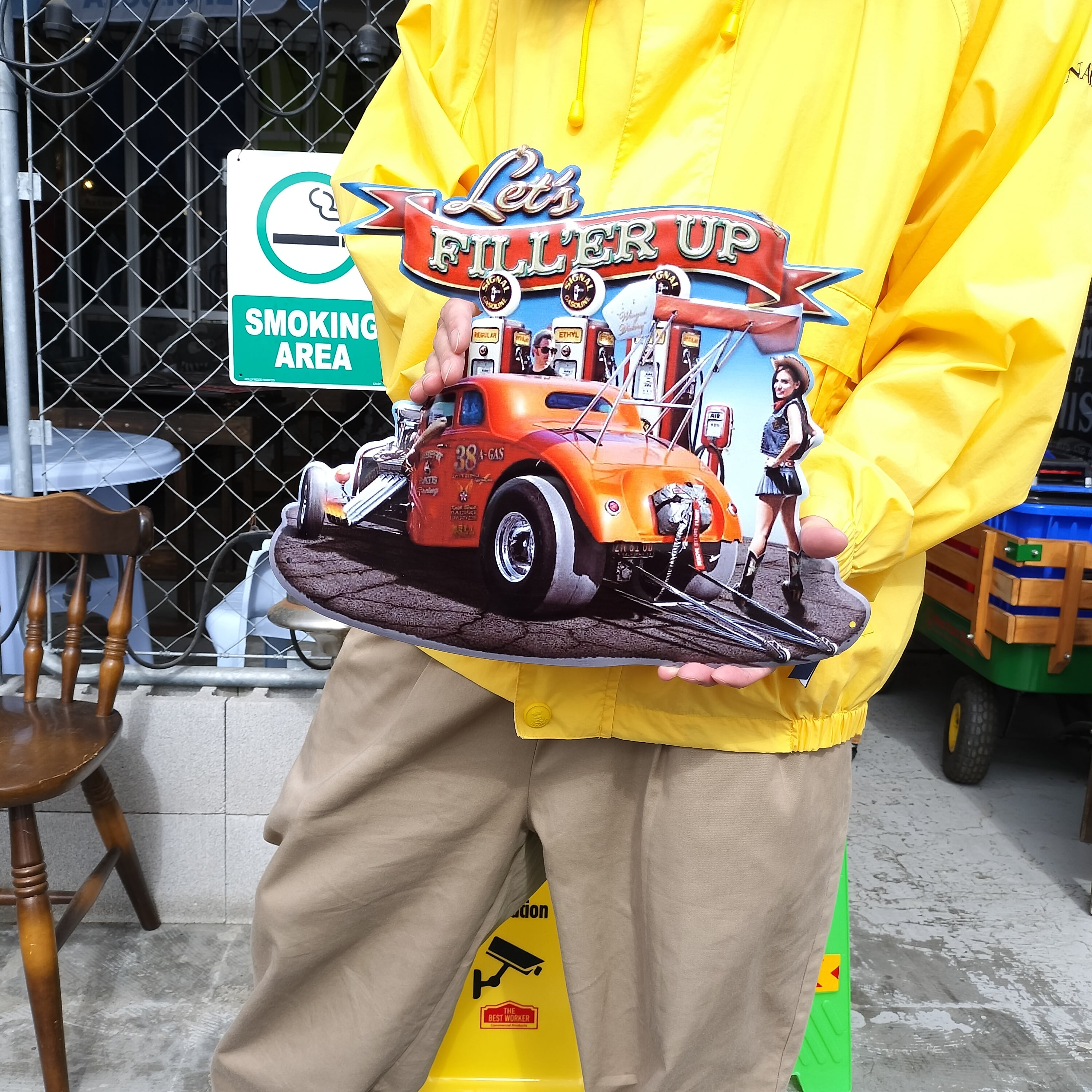 アンティークアメリカンエンボスサイン◆ FILL'ER UP◆ブリキ看板 ダイカット ショップ