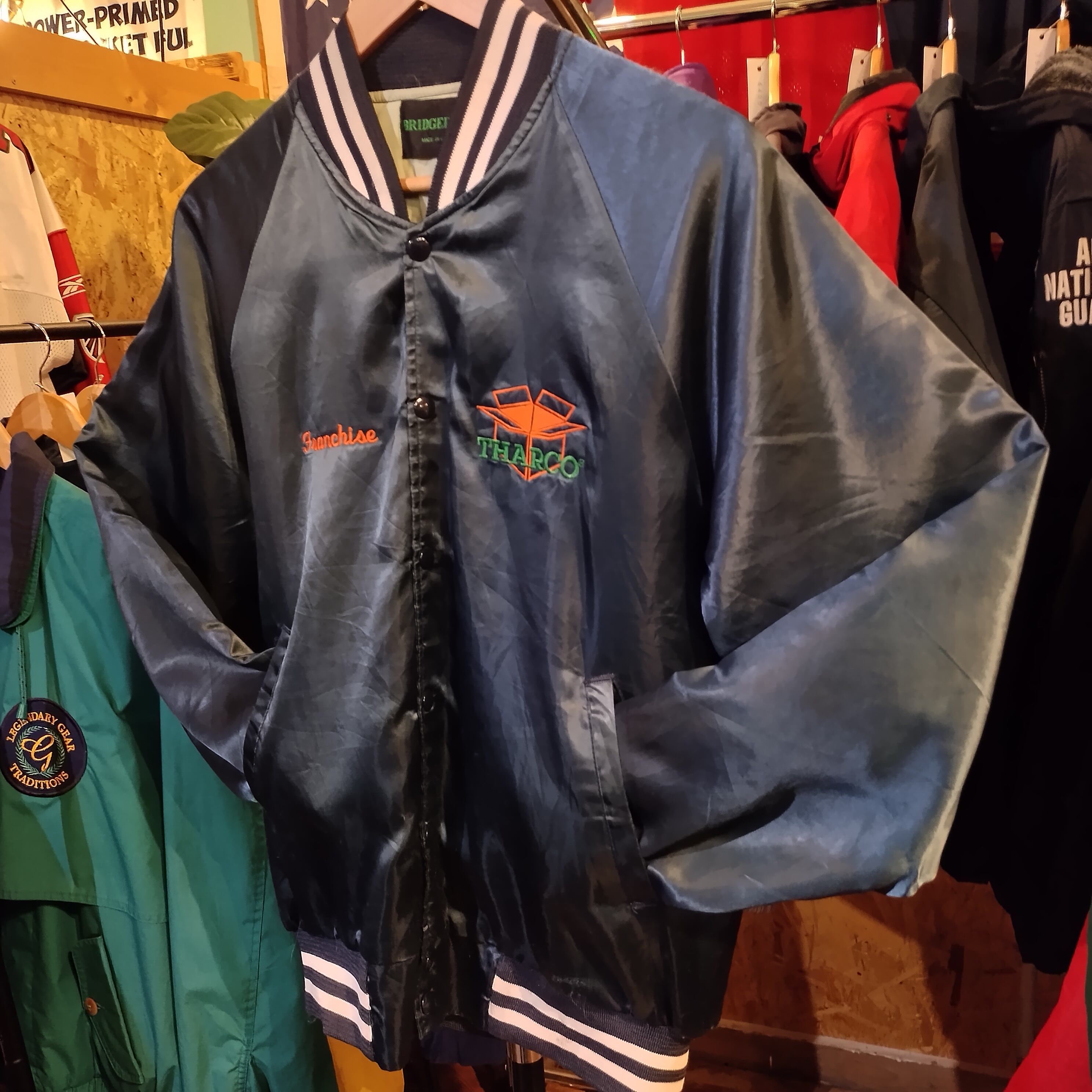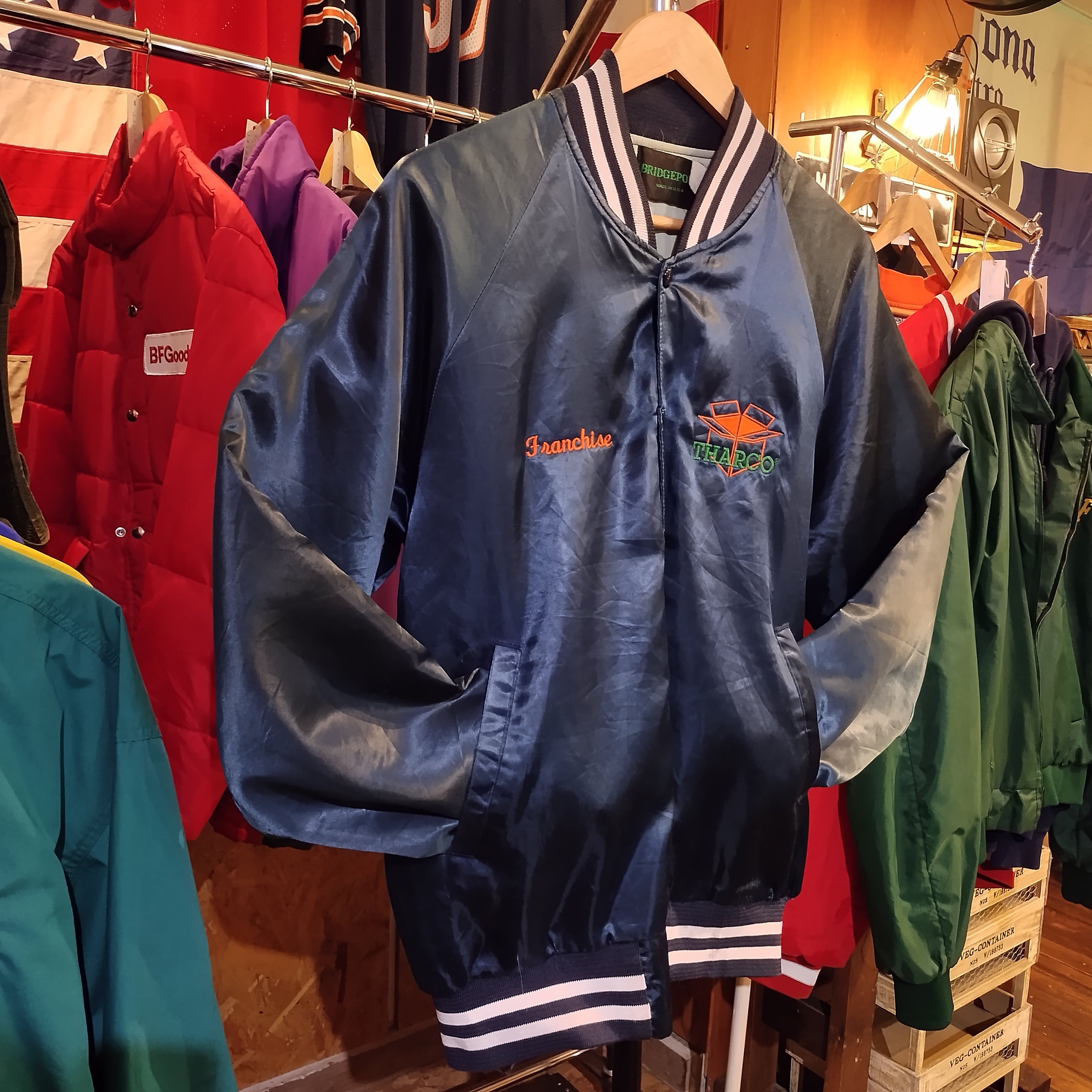 Used ナイロンジャケット◆アメリカ製 スタジャン Bridgeport 襟無し ネイビー◆ヴィンテージ 古着 アメリカン
