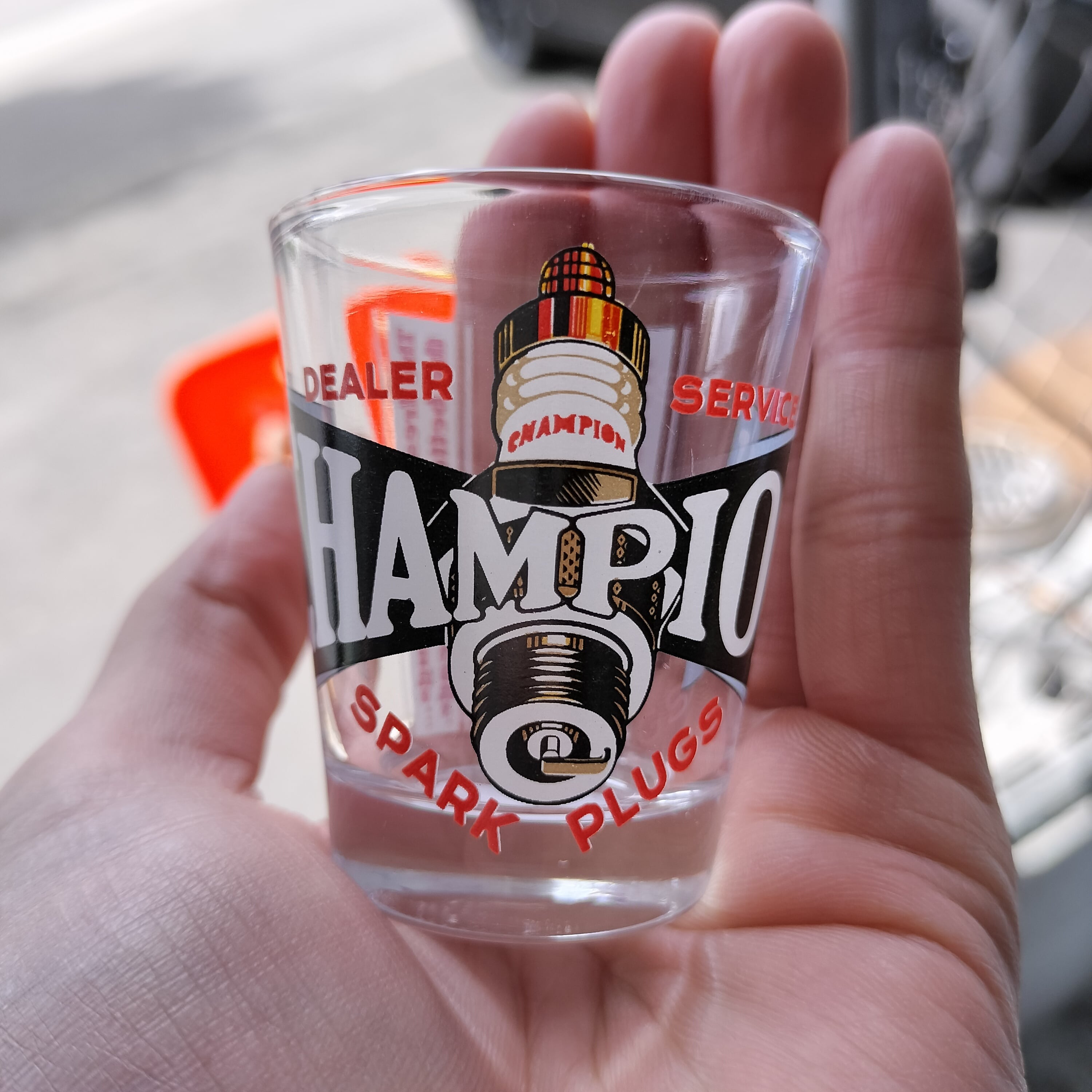 US モーターブランド ショットグラス◆champion スパークプラグ◆アメリカン雑貨 ディスプレイ コレクション