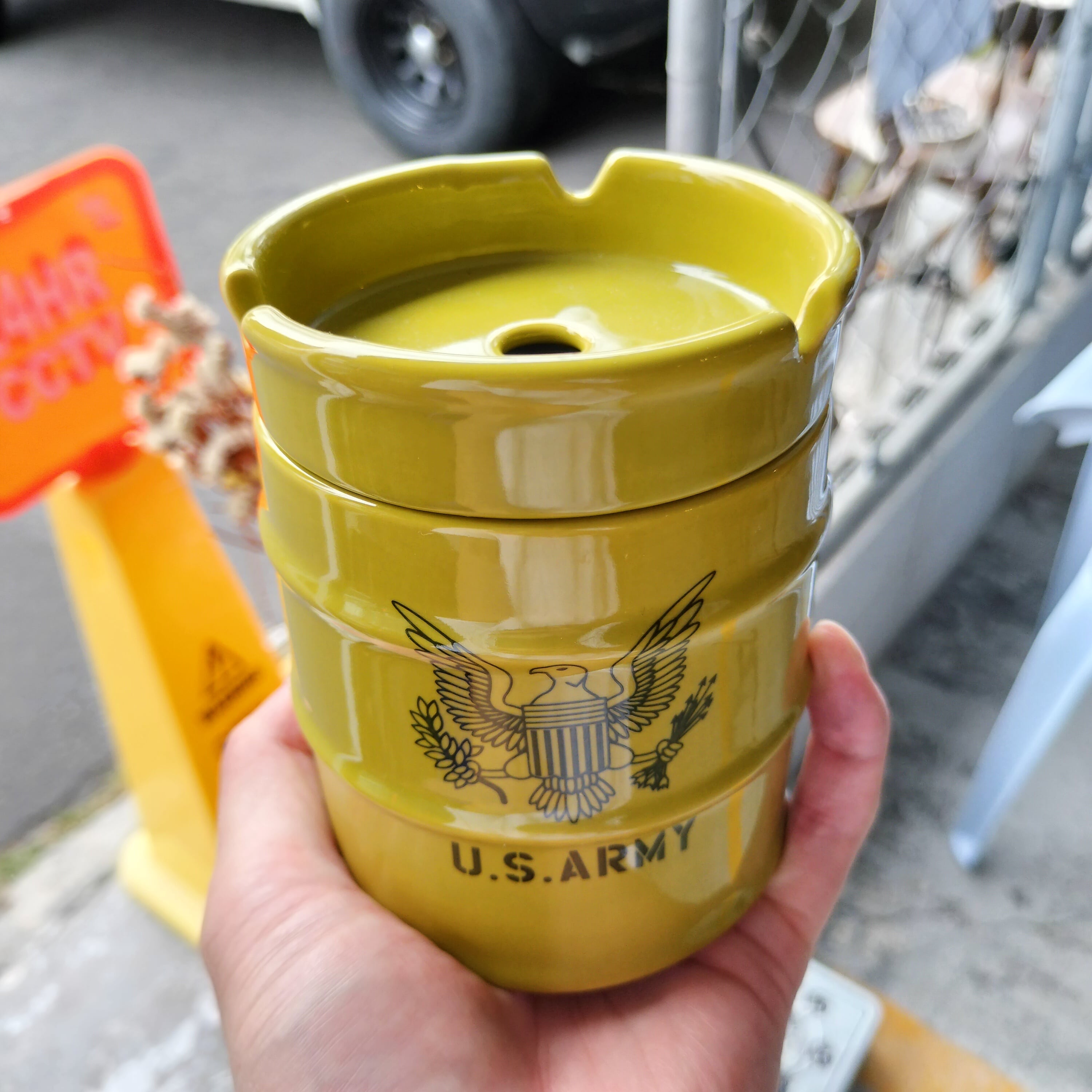 ドラム缶型アシュトレイ・灰皿/USアーミー・オリーブ/アメリカン雑貨 ガレージ オブジェ