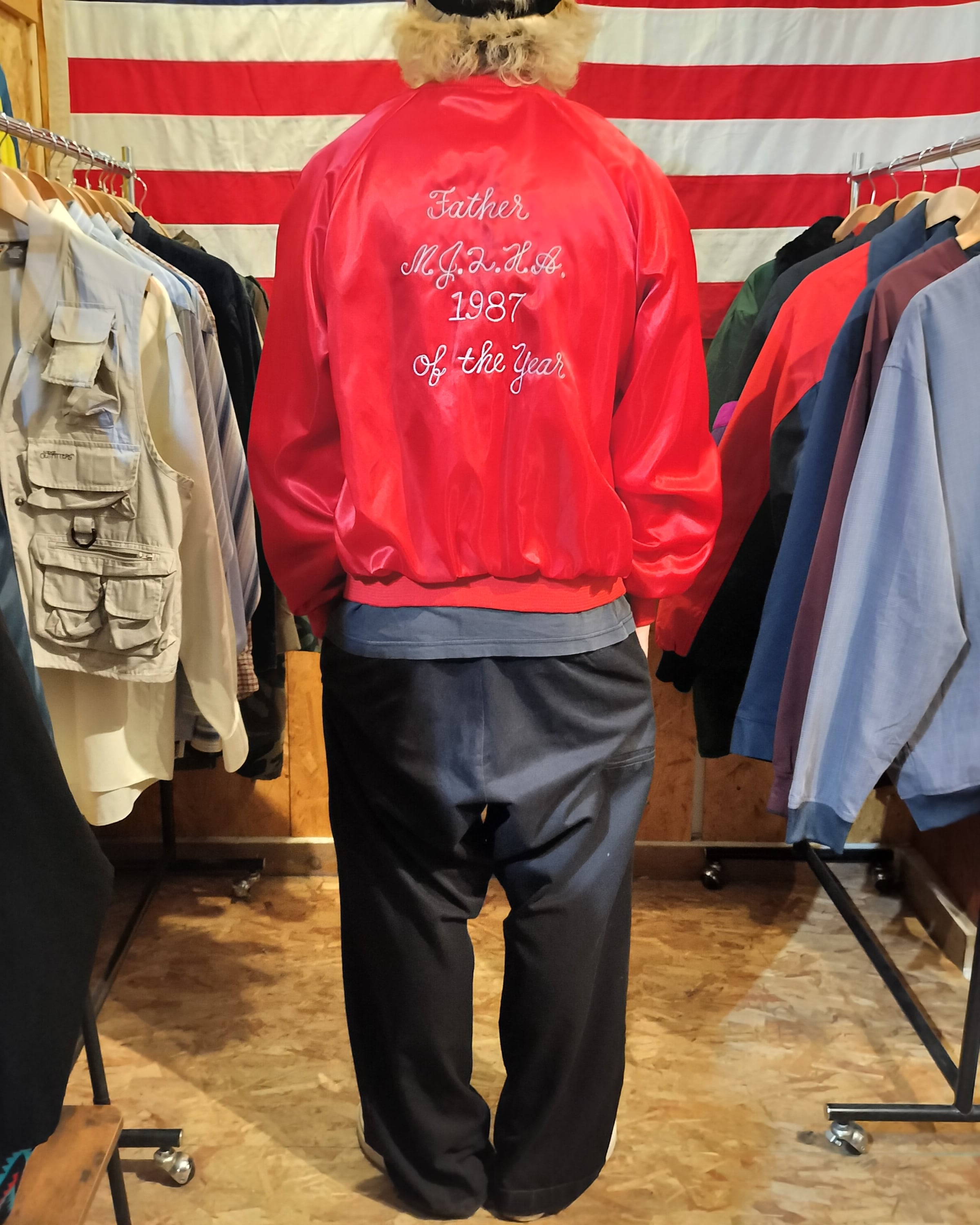 Used ナイロンジャケット◆L アメリカ製 刺繍1987 スタジャン レッド◆USA古着 ヴィンテージ