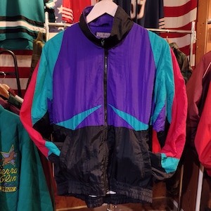 ◆90s アスレチックワークス レトロ マルチカラー ナイロンジャケット